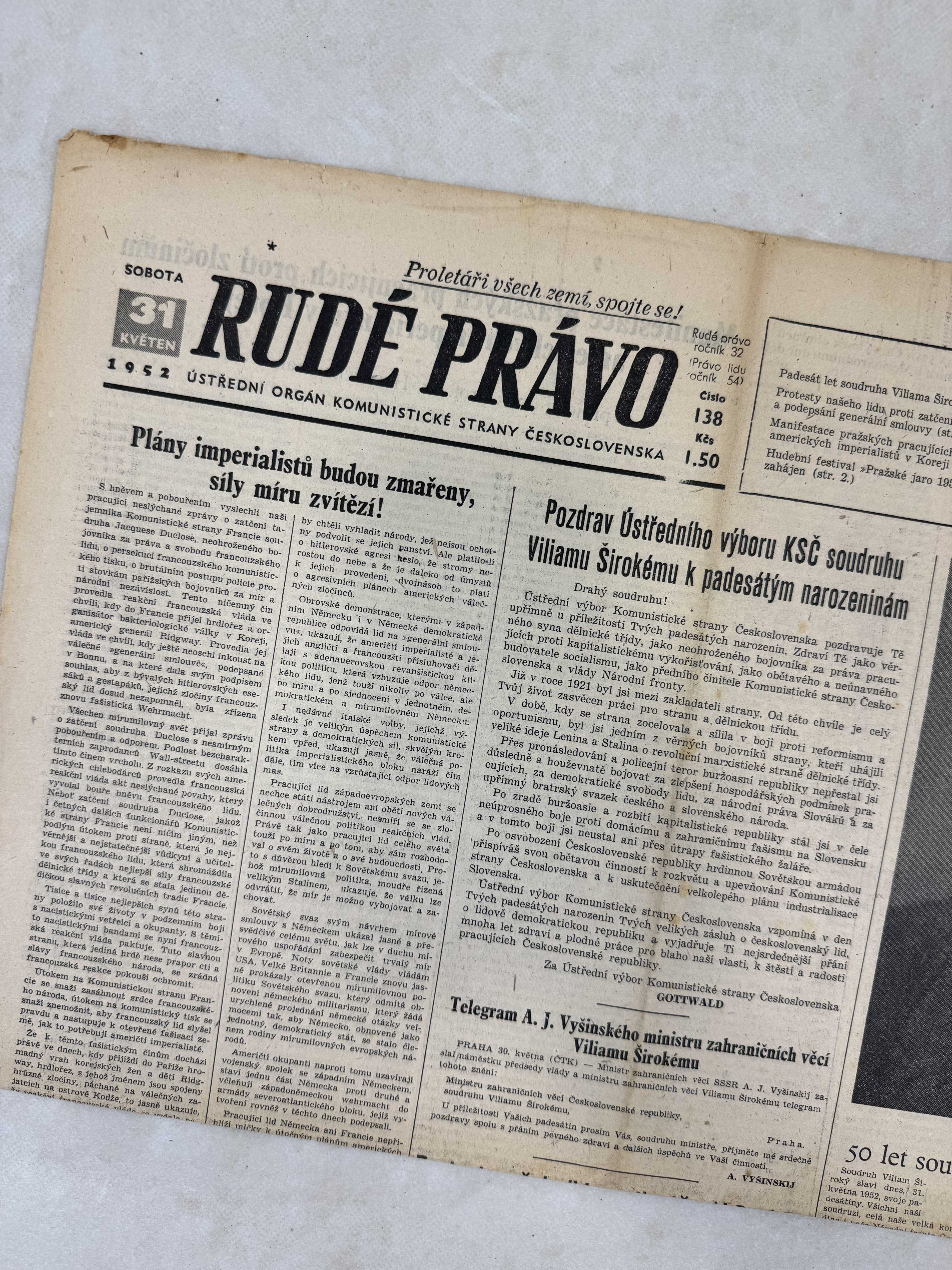Rudé právo 31.5.1952