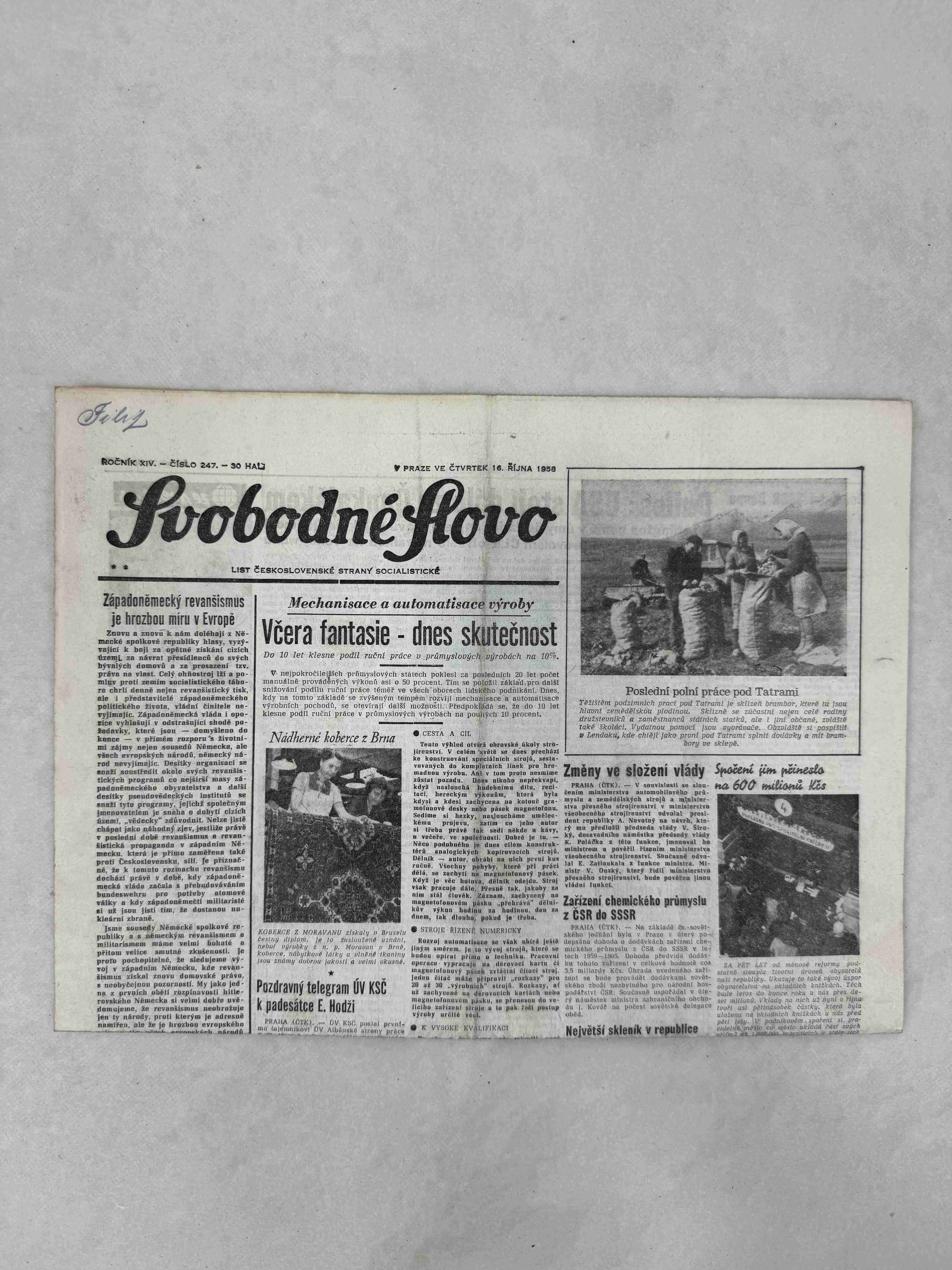 Originální dobový výtisk novin, nejedná se o reprodukci!