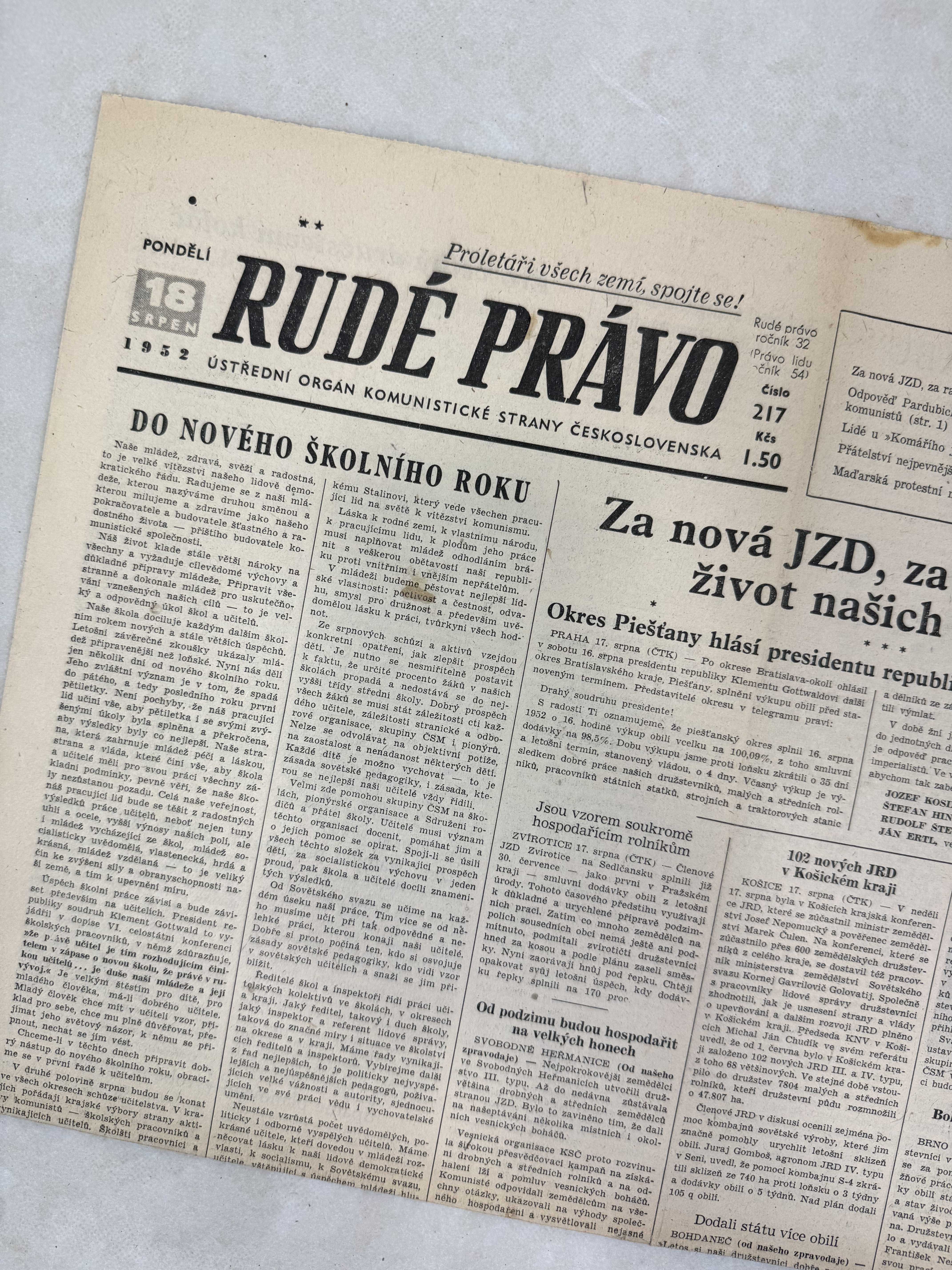 Rudé právo 18.8.1952