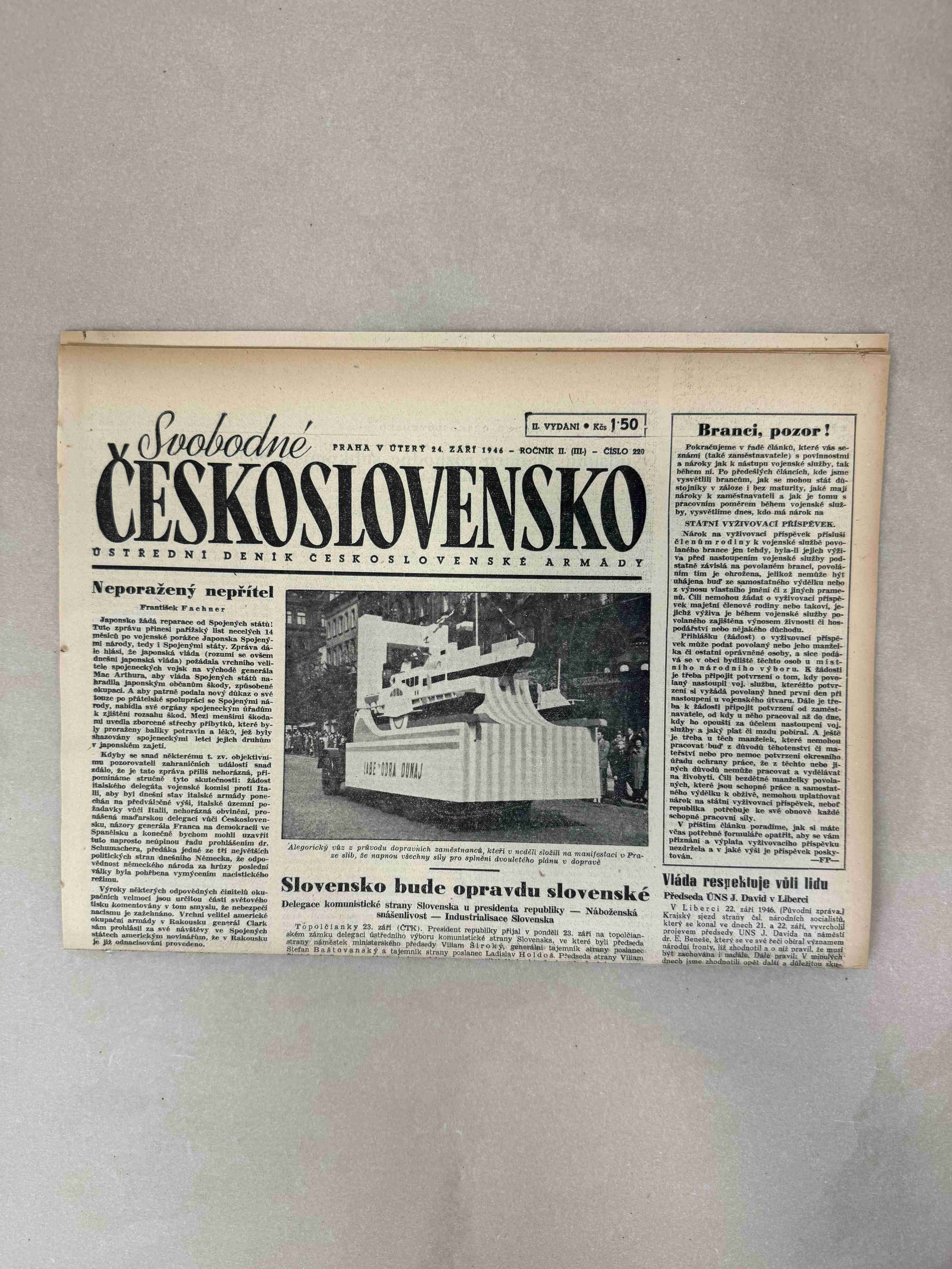 Nabízené noviny jsou určeny výhradně ke sběratelským účelům a neslouží k propagaci jakéhokoliv hnutí směřujícího k potlačení práv a svobod člověka (nacistického, komunistického apod.). Prodávající se distancuje od výše uvedených hnutí a jejich myšlenek.