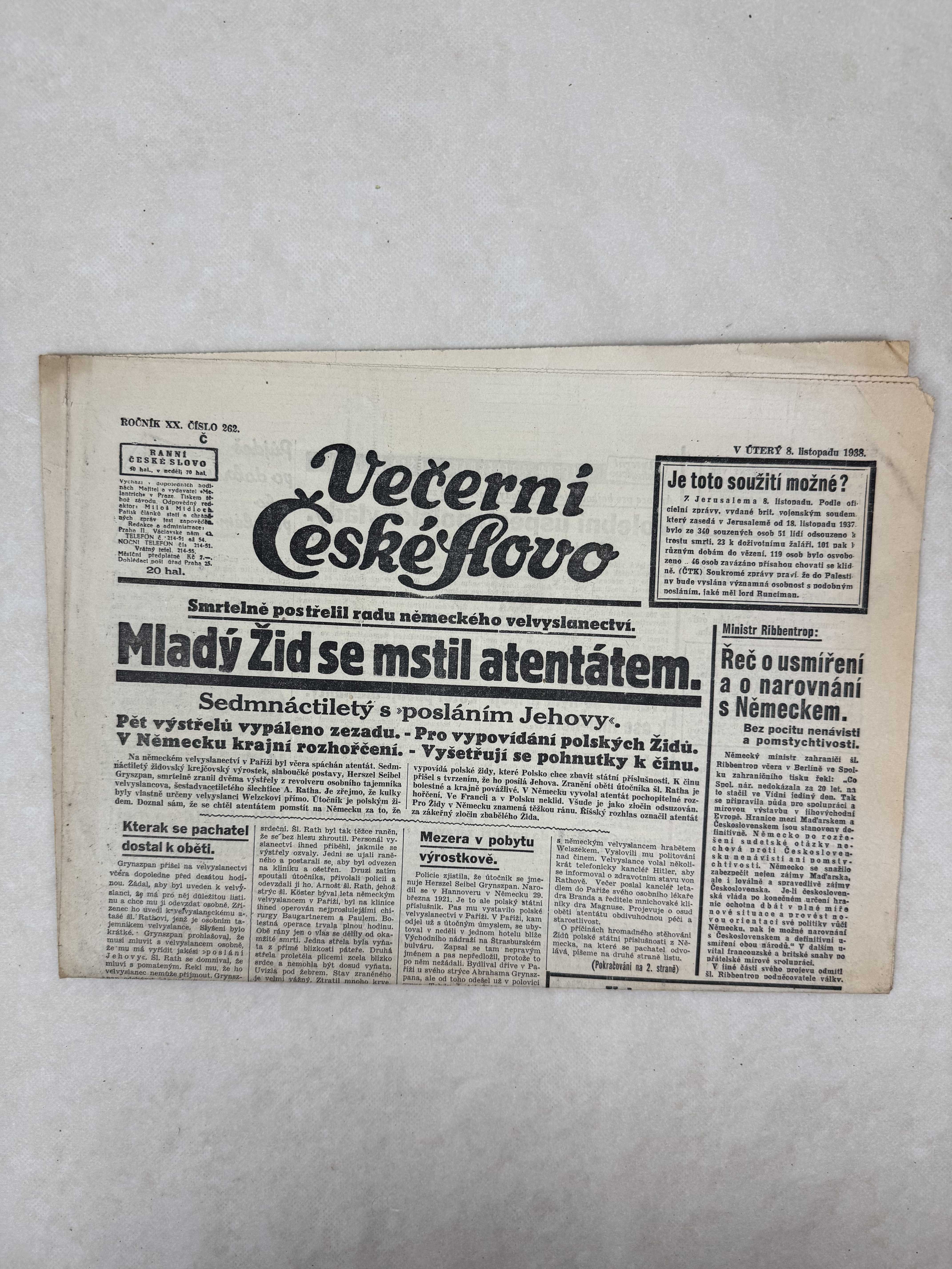 Večerní České slovo 8.11.1938