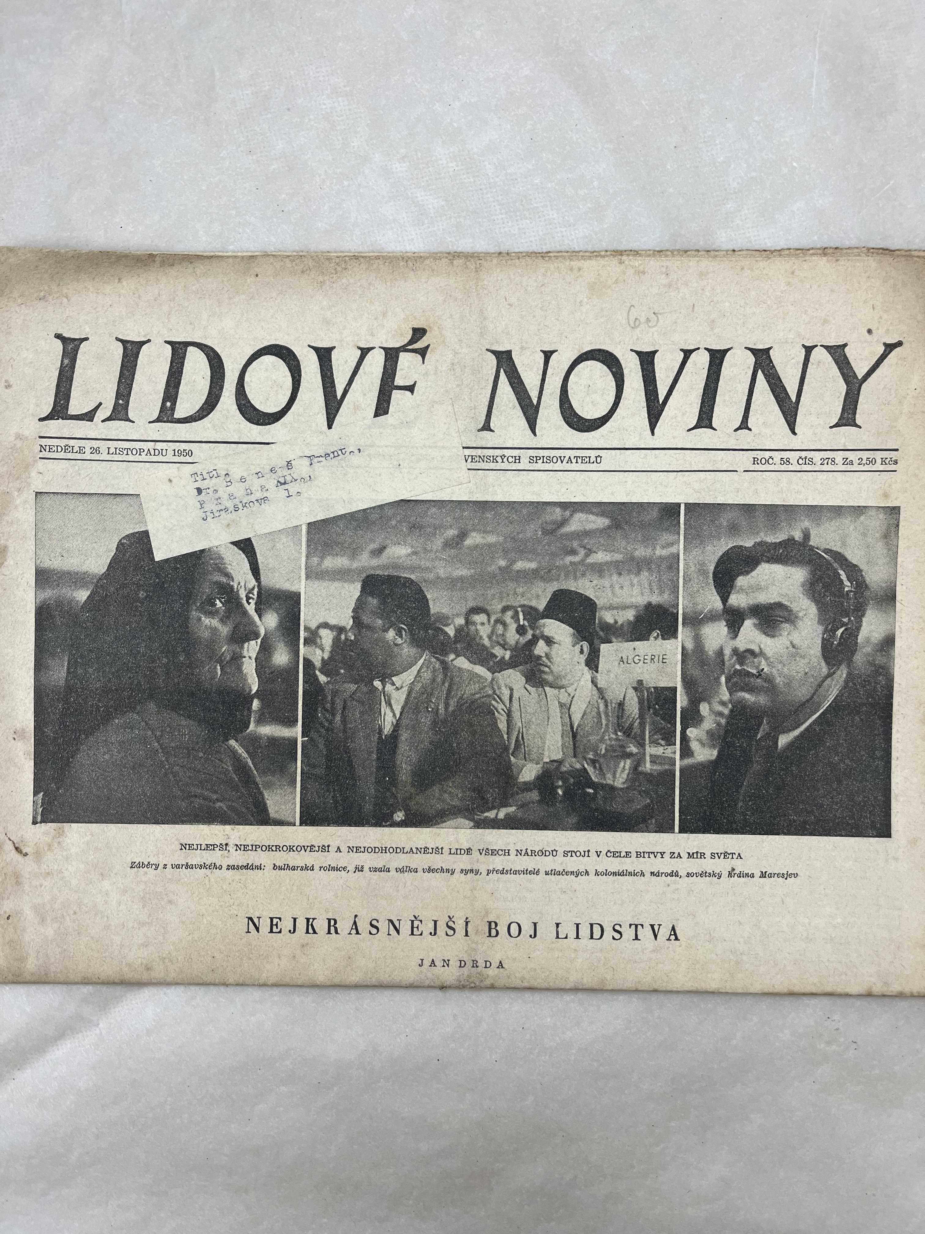 Originální dobový výtisk novin, nejedná se o reprodukci!