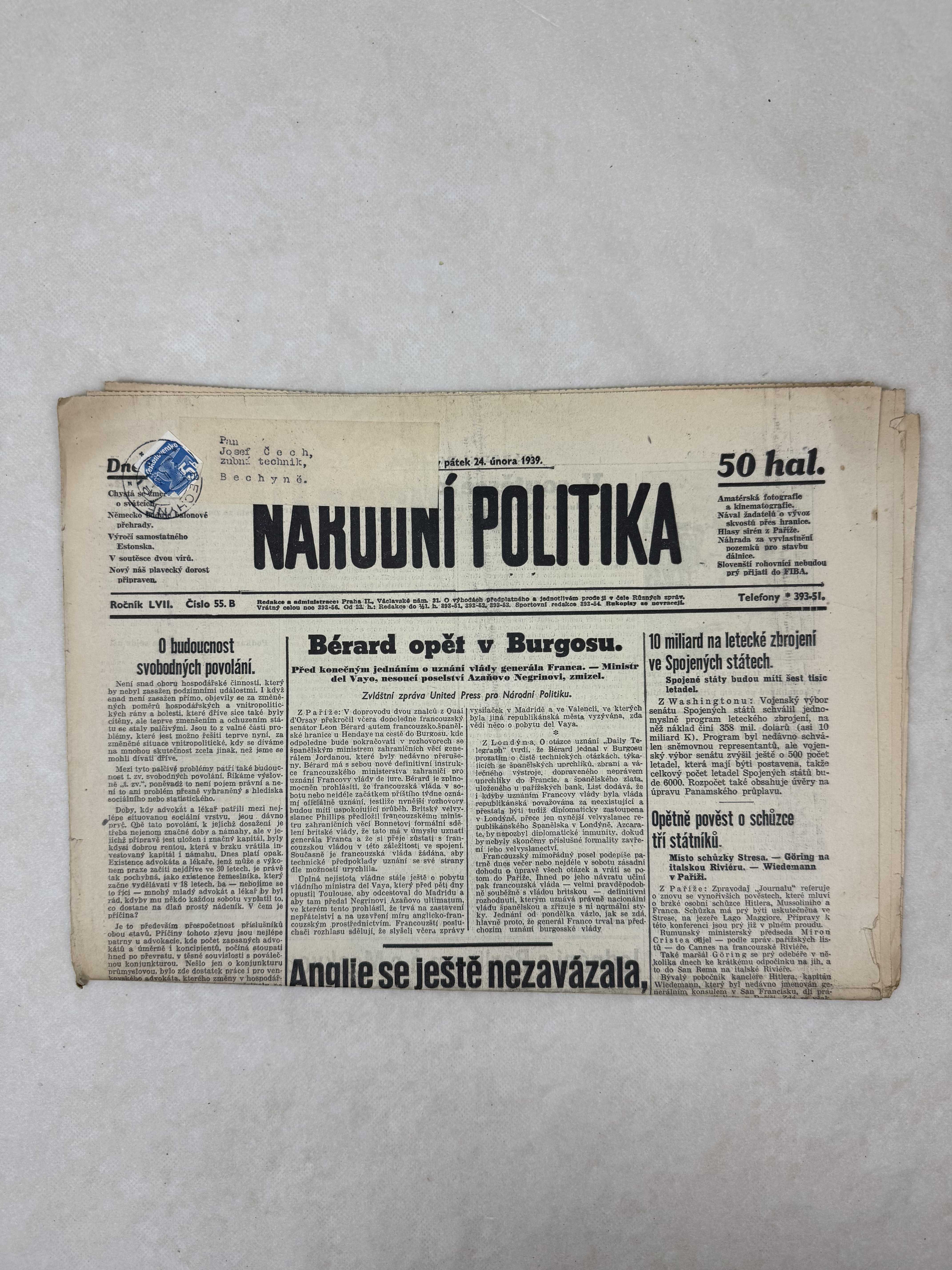 Národní politika 24.2.1939