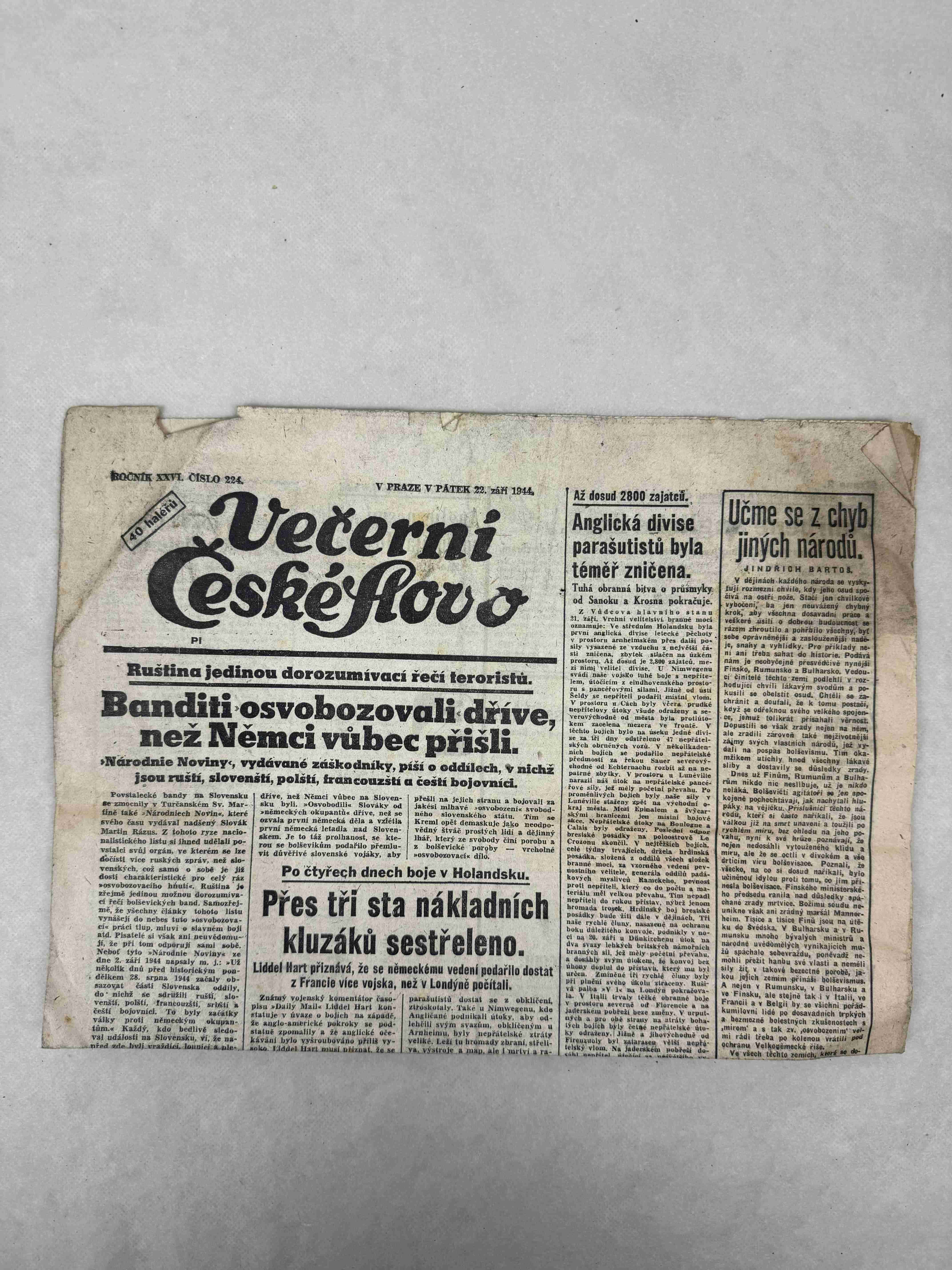 Nabízené noviny jsou určeny výhradně ke sběratelským účelům a neslouží k propagaci jakéhokoliv hnutí směřujícího k potlačení práv a svobod člověka (nacistického, komunistického apod.). Prodávající se distancuje od výše uvedených hnutí a jejich myšlenek.