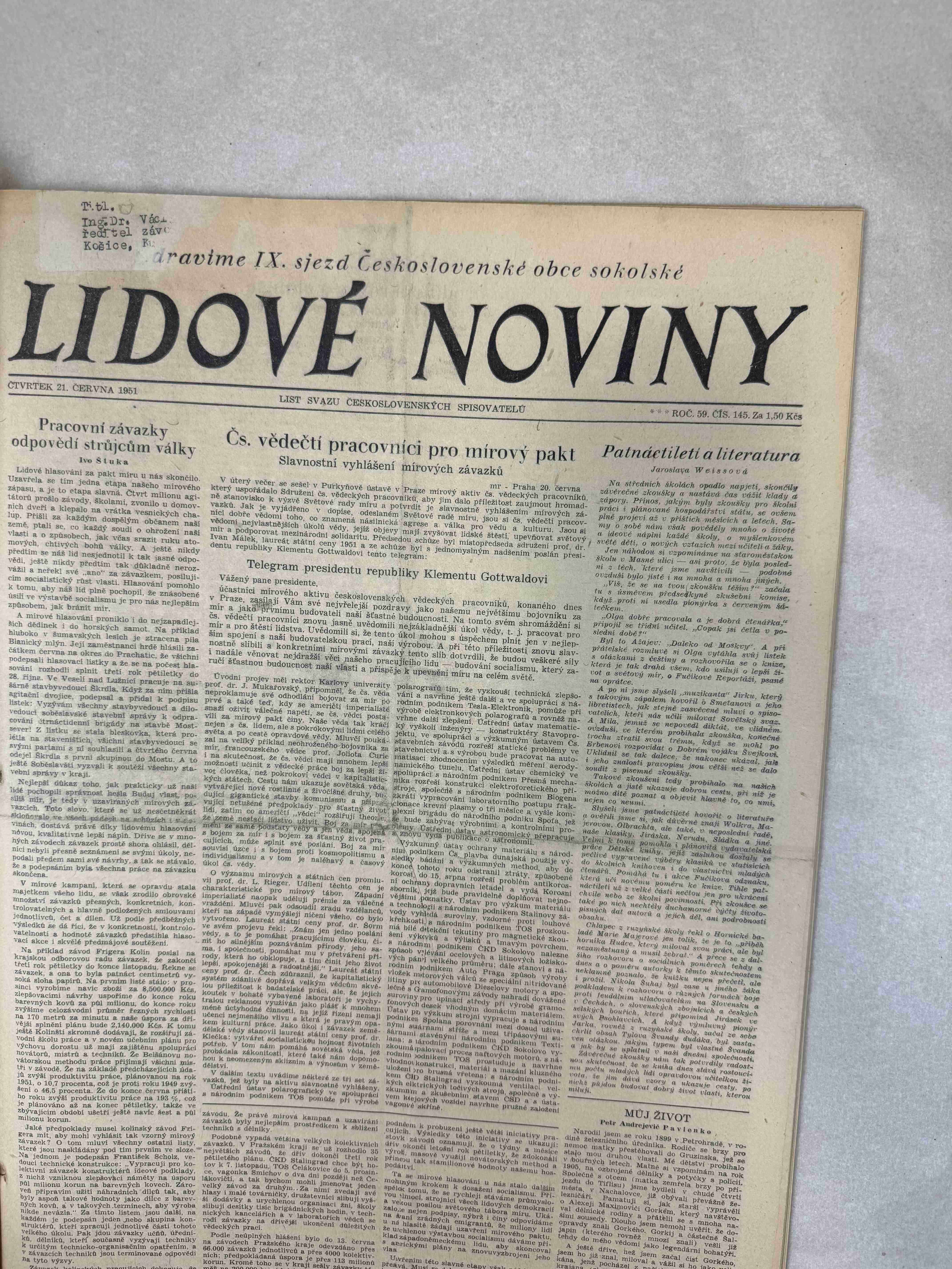 Originální dobový výtisk novin, nejedná se o reprodukci!
