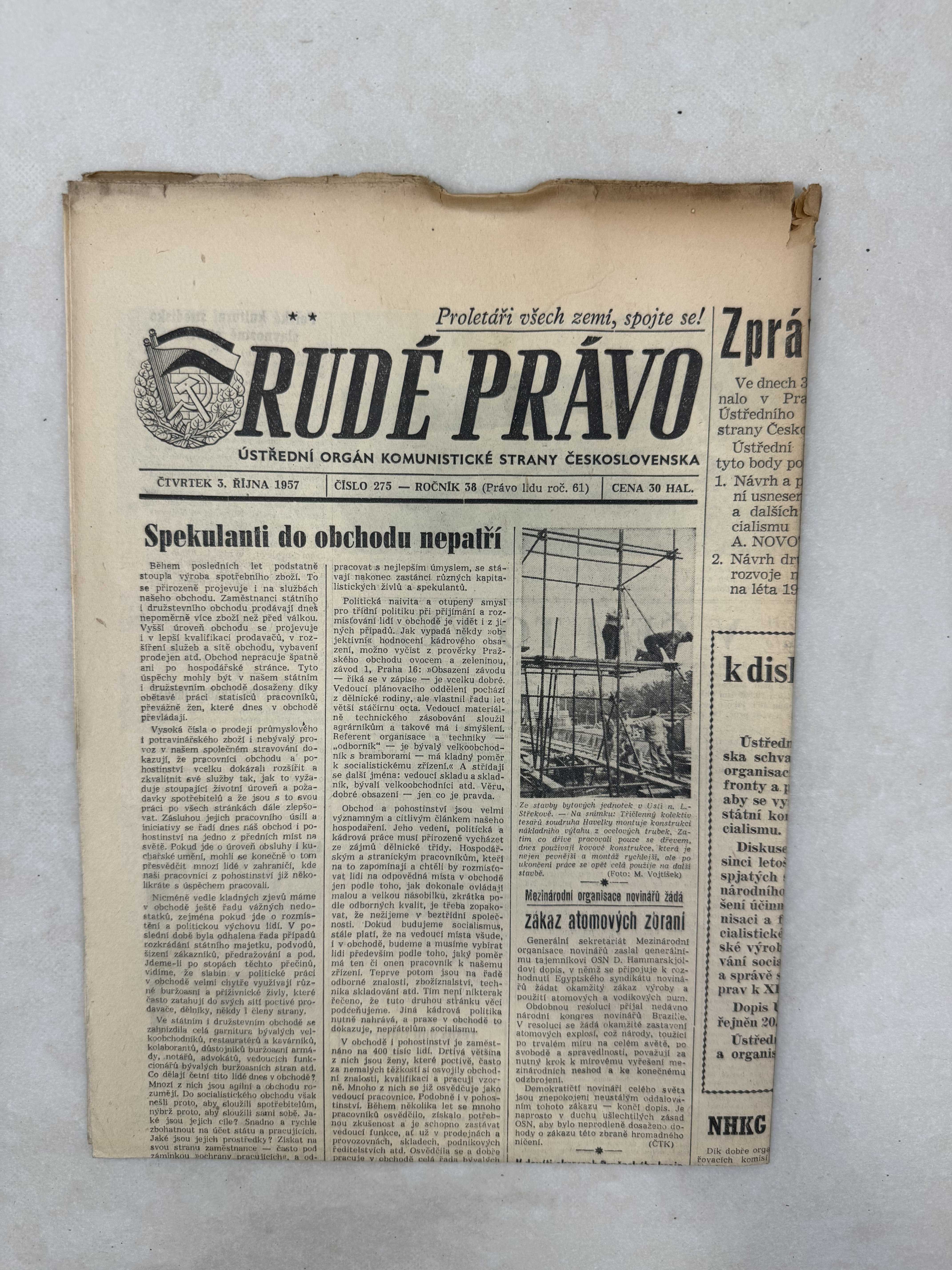 Originální dobový výtisk novin, nejedná se o reprodukci!