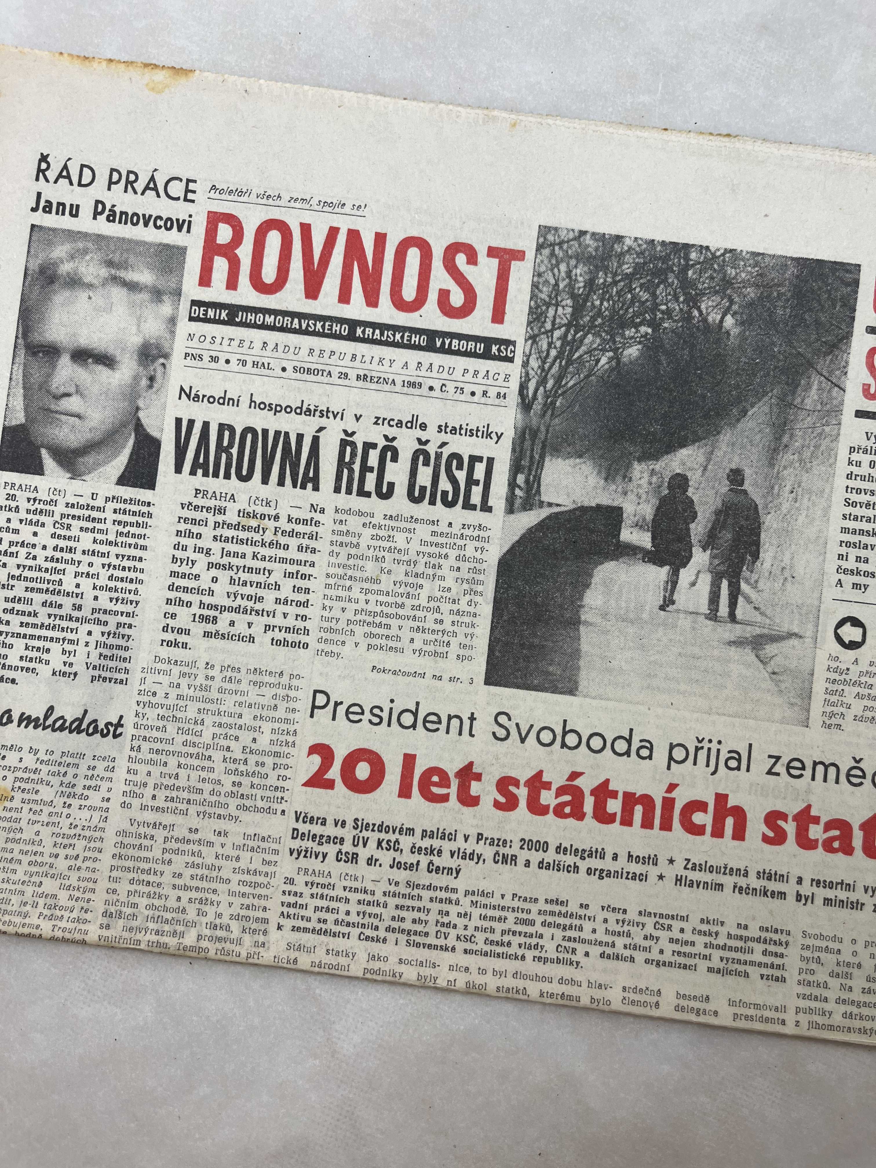 Noviny Rovnost 29.3.1969