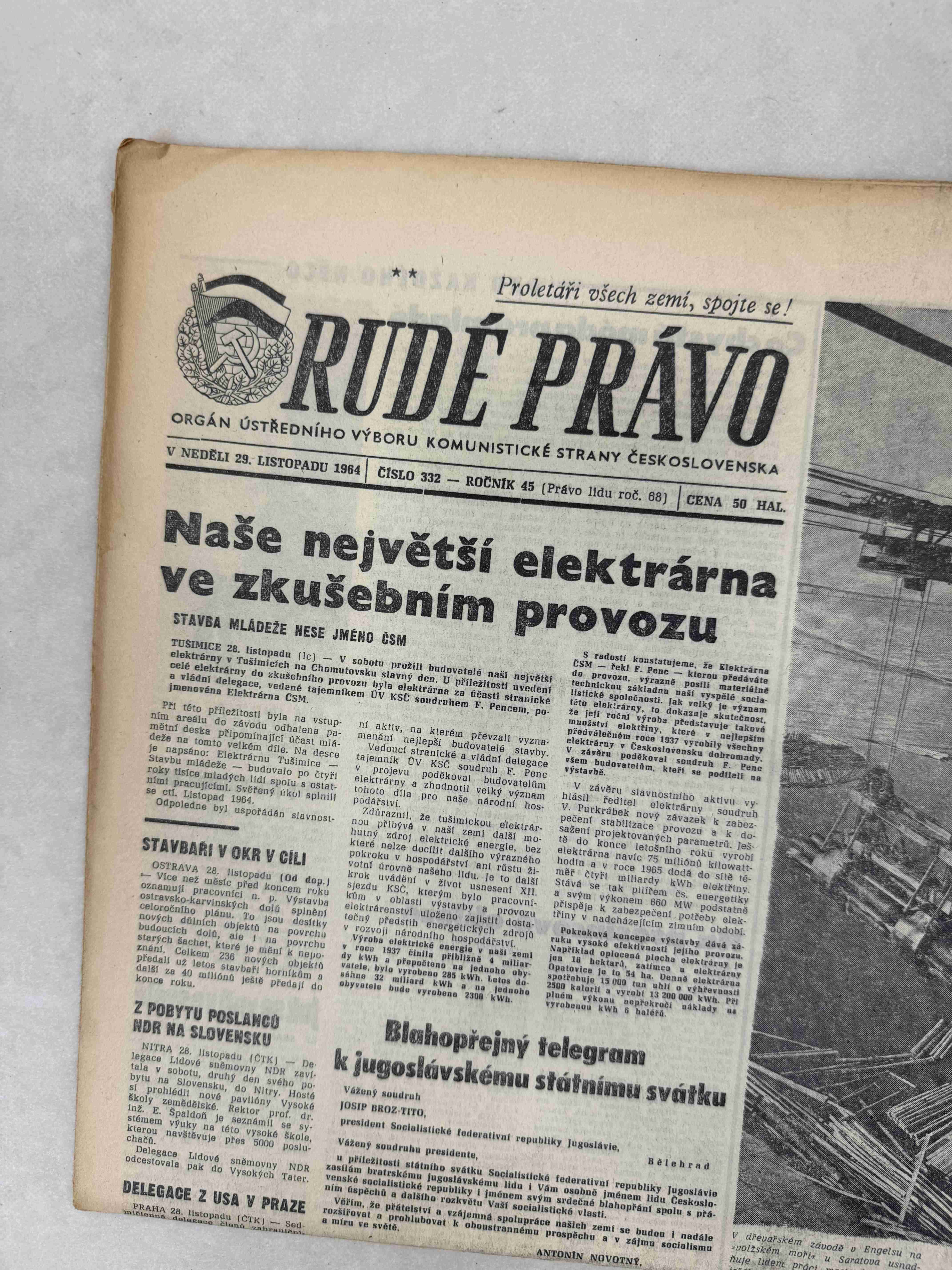 Originální dobový výtisk novin, nejedná se o reprodukci!
