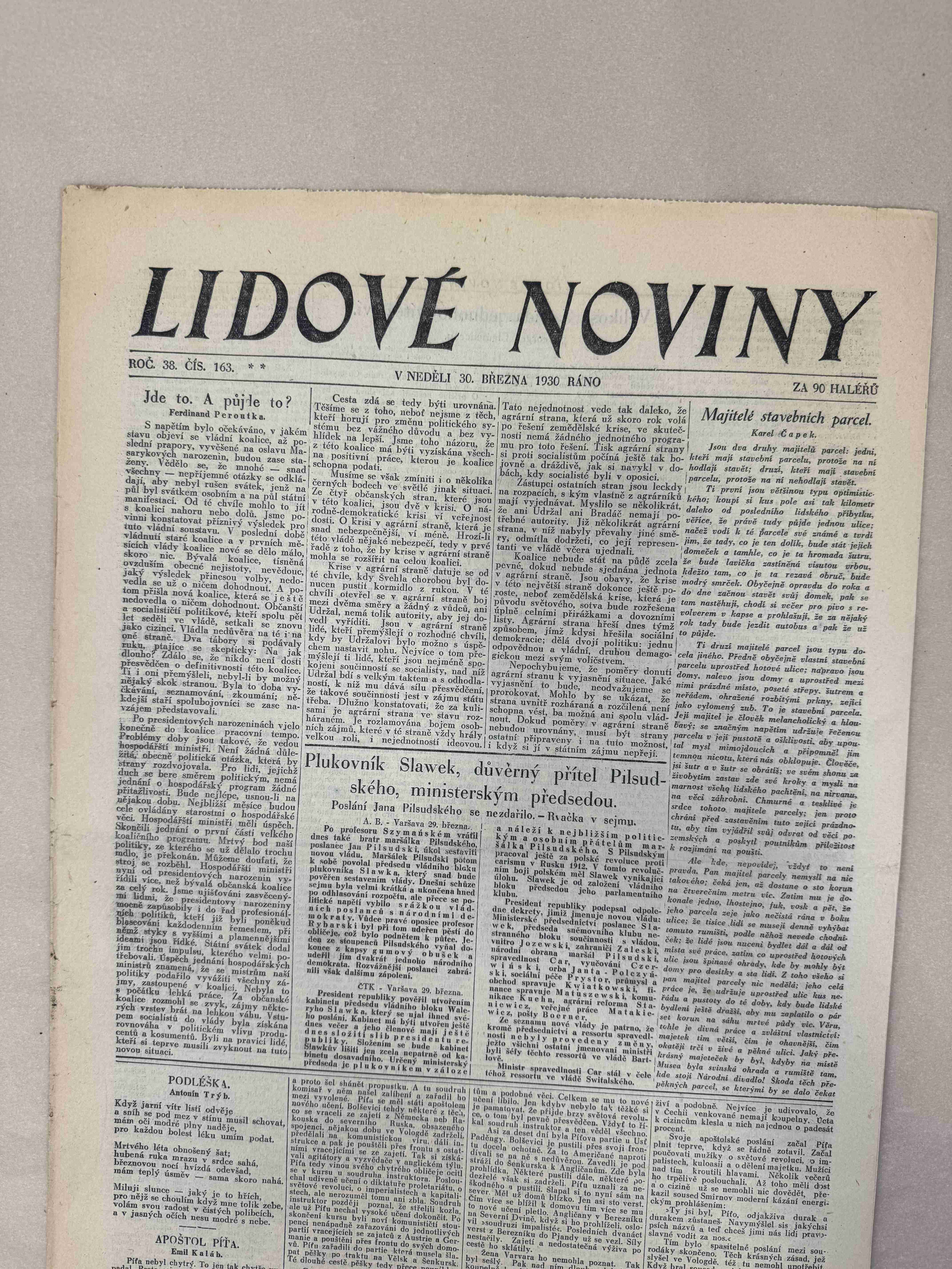 Originální dobový výtisk novin, nejedná se o reprodukci!