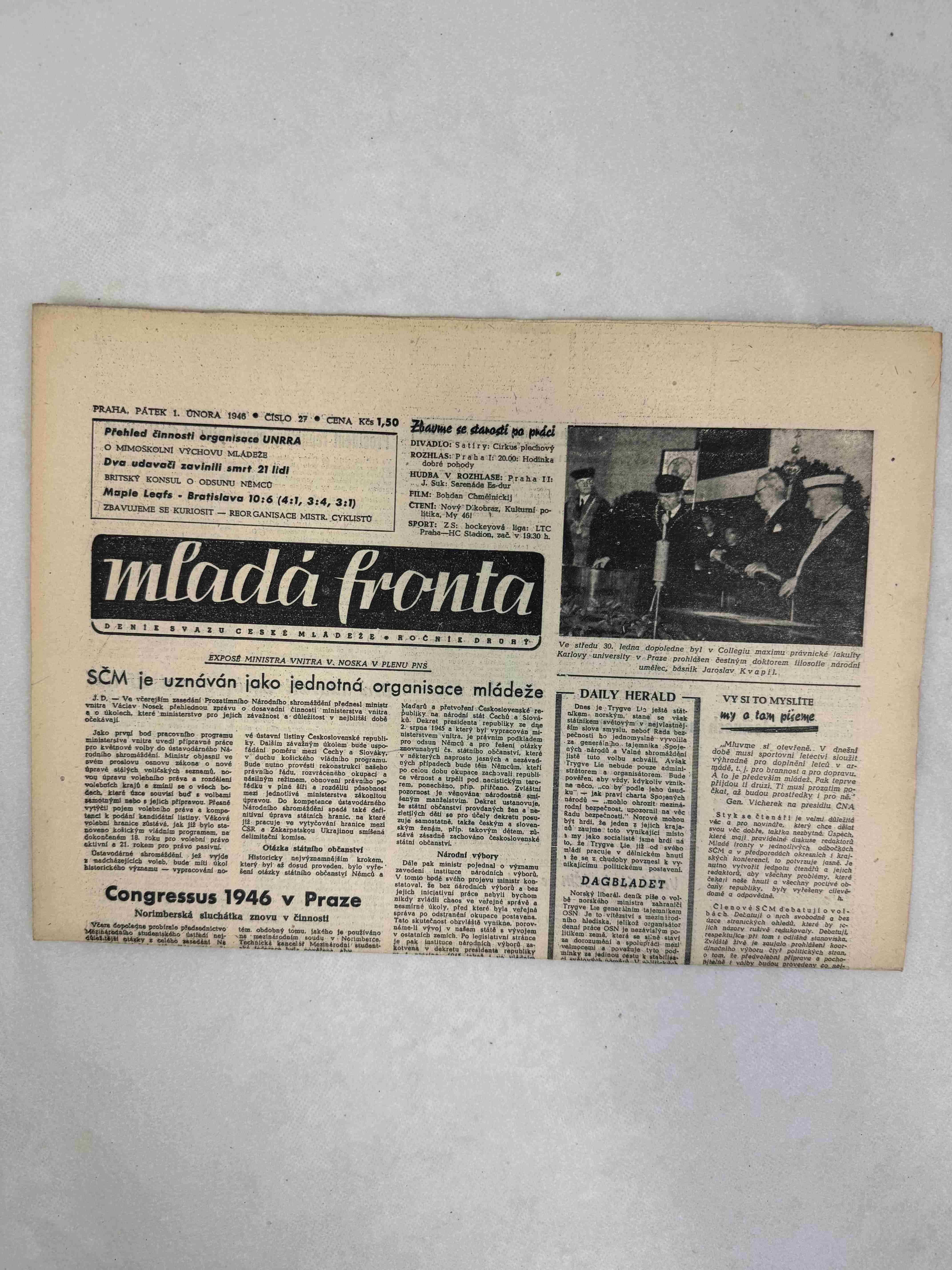 Originální dobový výtisk novin, nejedná se o reprodukci!