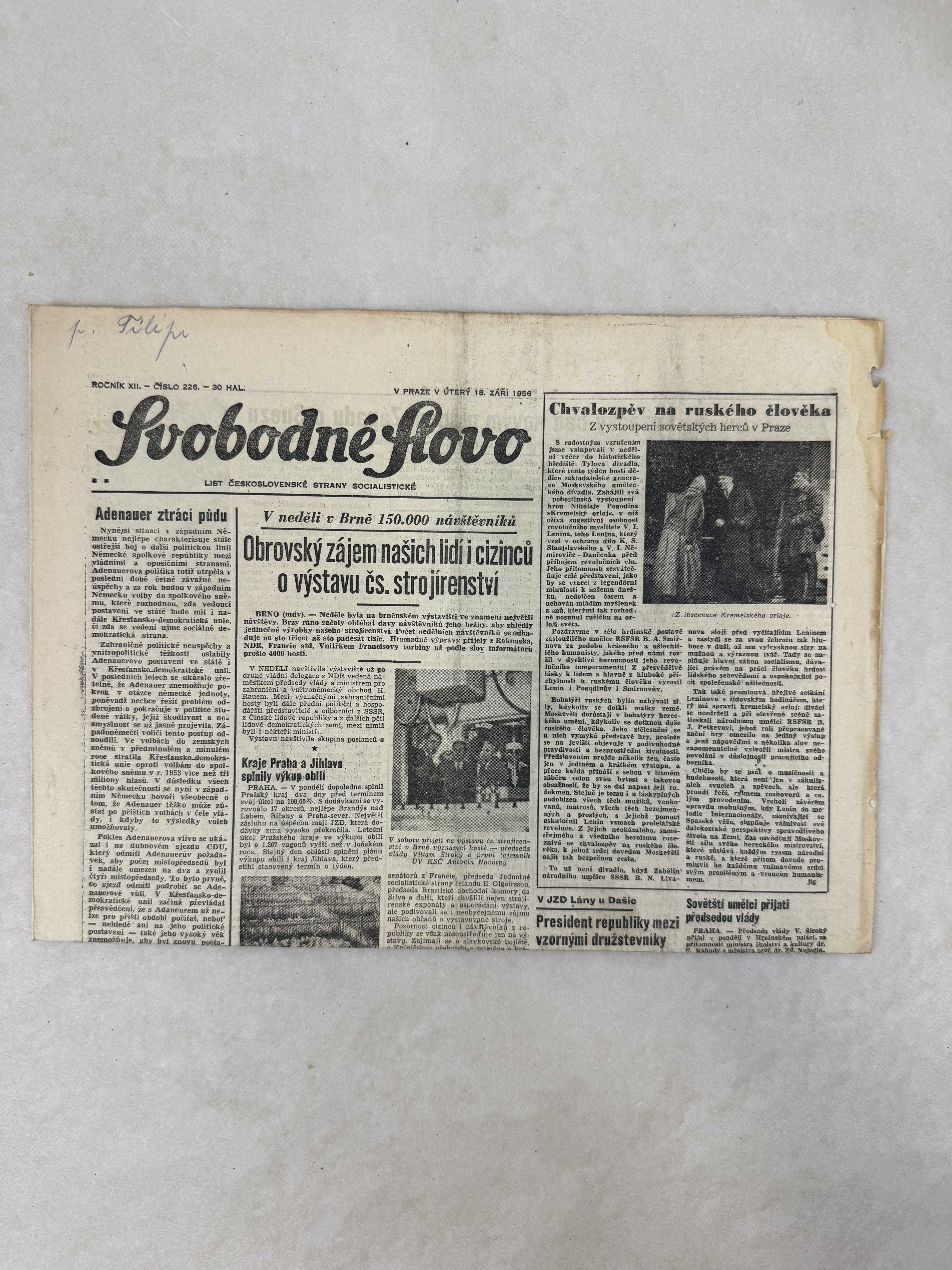 Svobodné slovo 18.9.1956