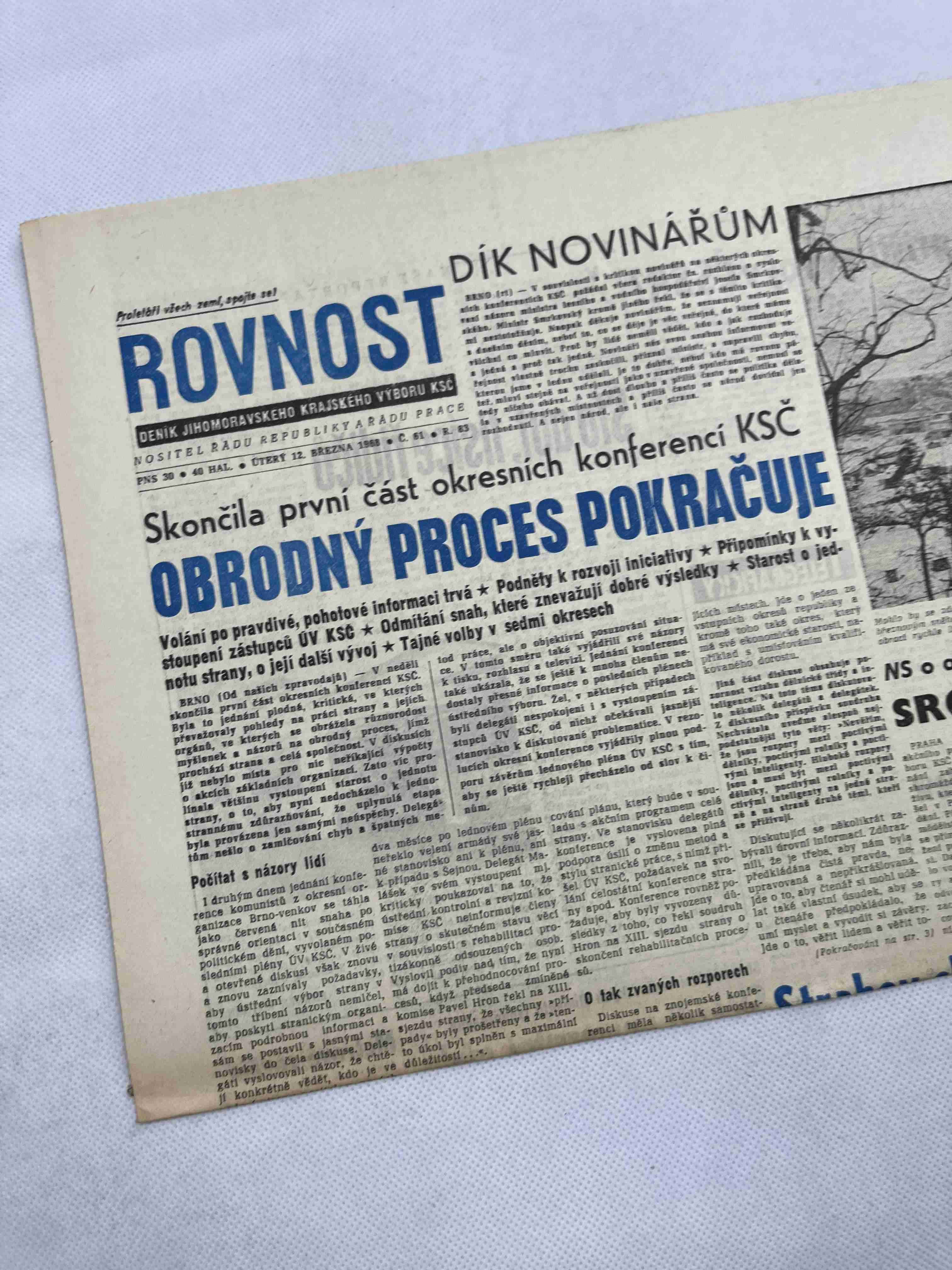 Originální dobový výtisk novin, nejedná se o reprodukci!
