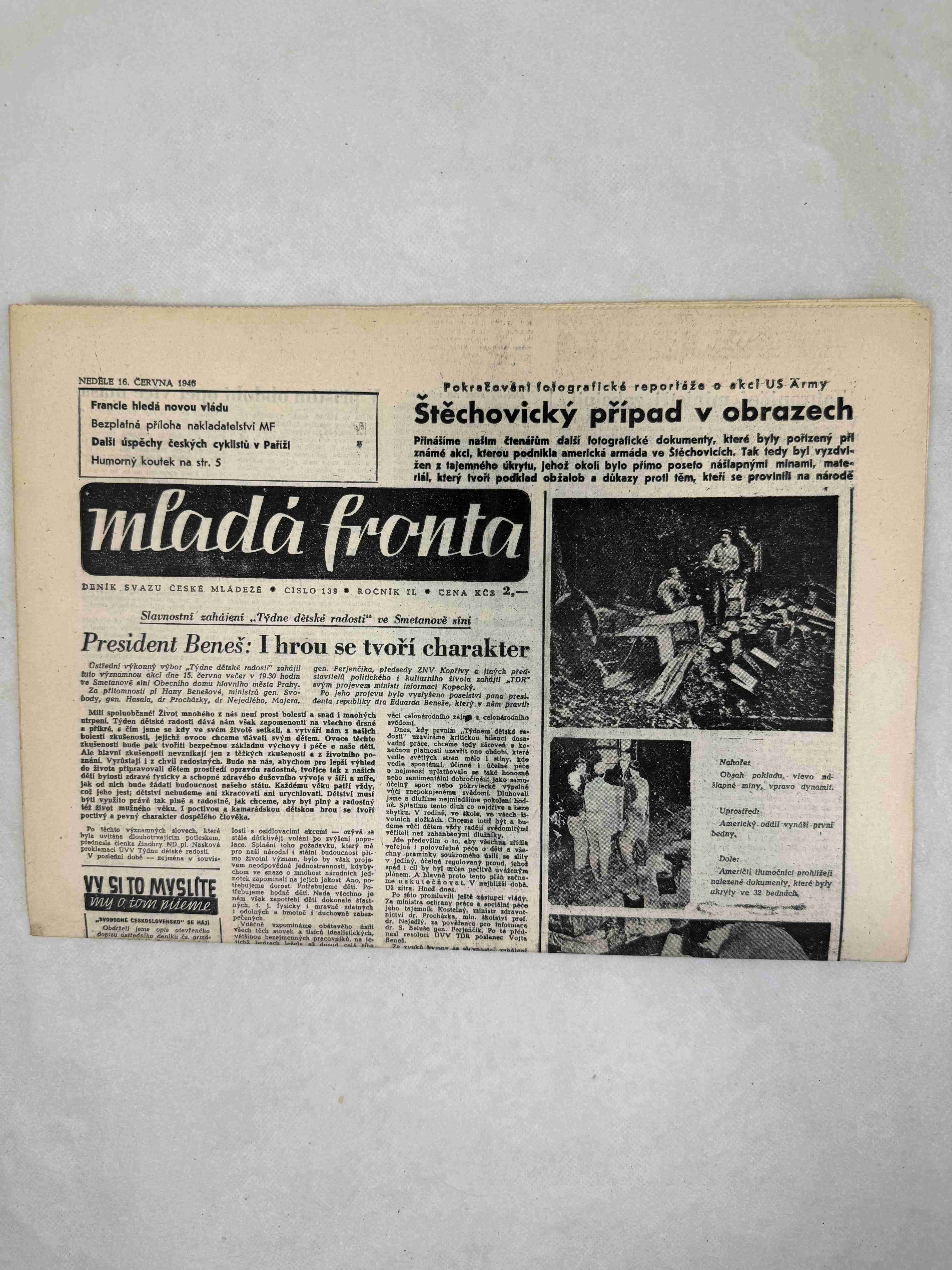 Originální dobový výtisk novin, nejedná se o reprodukci!