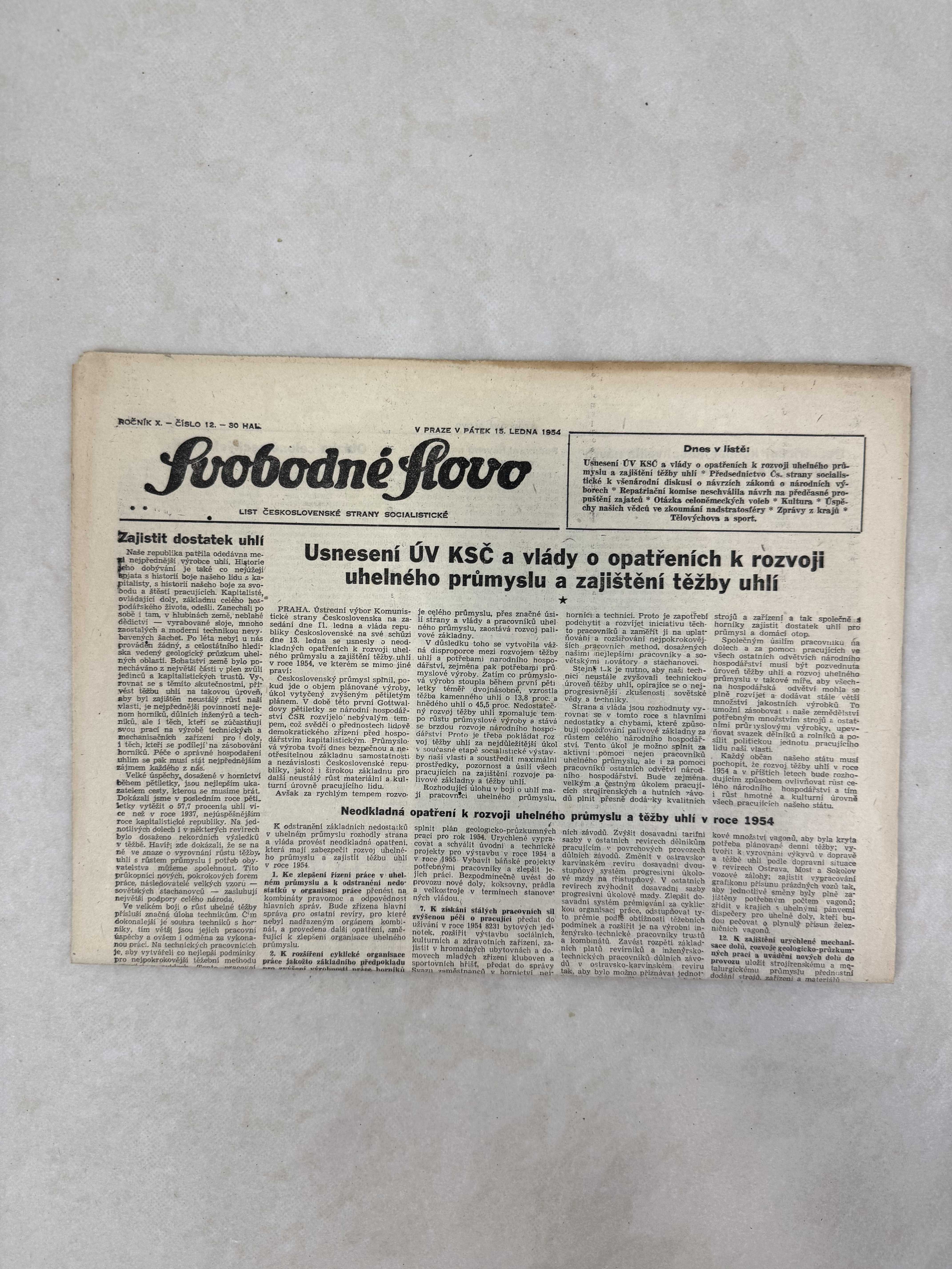 Svobodné slovo 15.1.1954