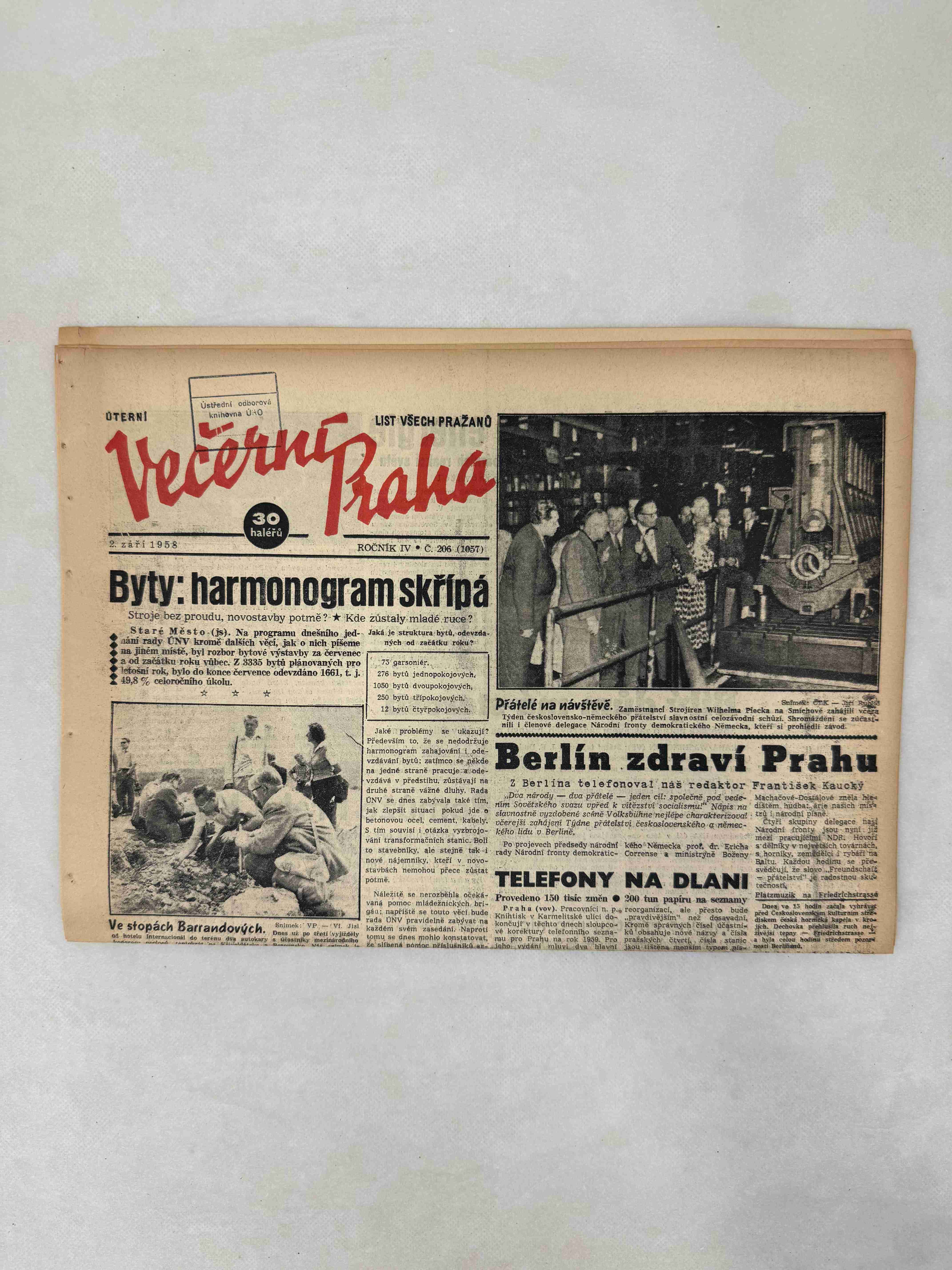 Originální dobový výtisk novin, nejedná se o reprodukci!