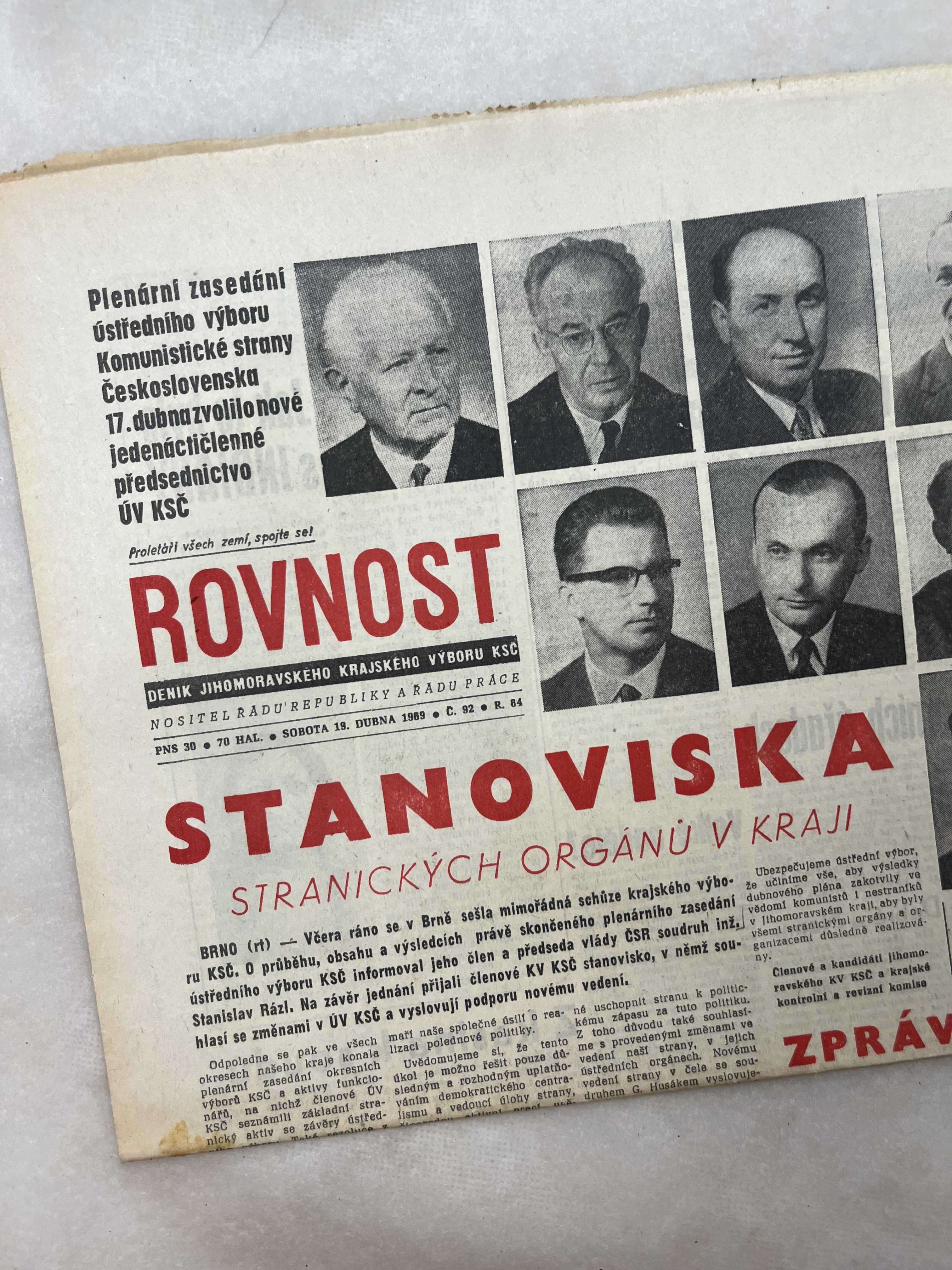 Noviny Rovnost 19.4.1969