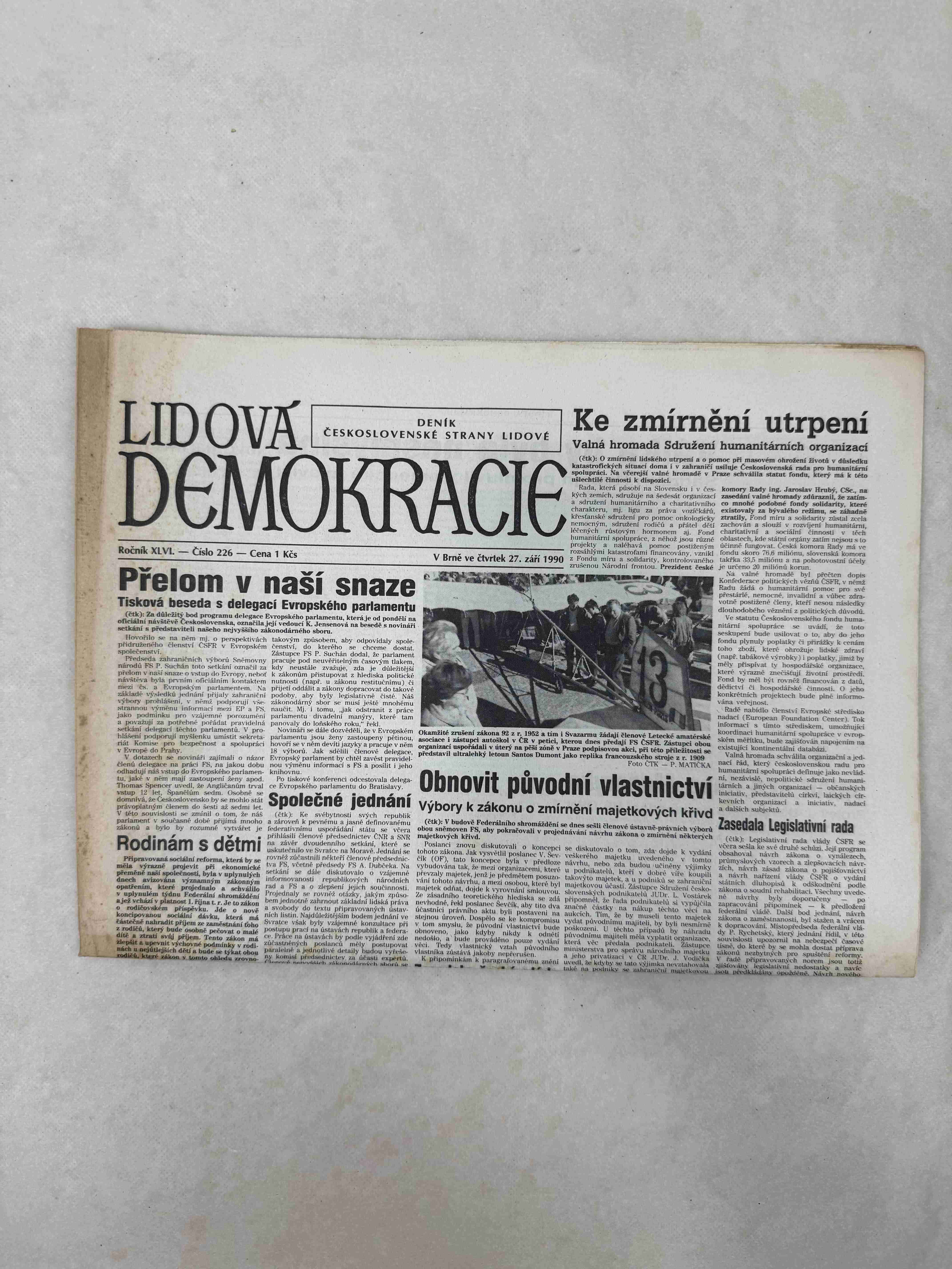Originální dobový výtisk novin, nejedná se o reprodukci!