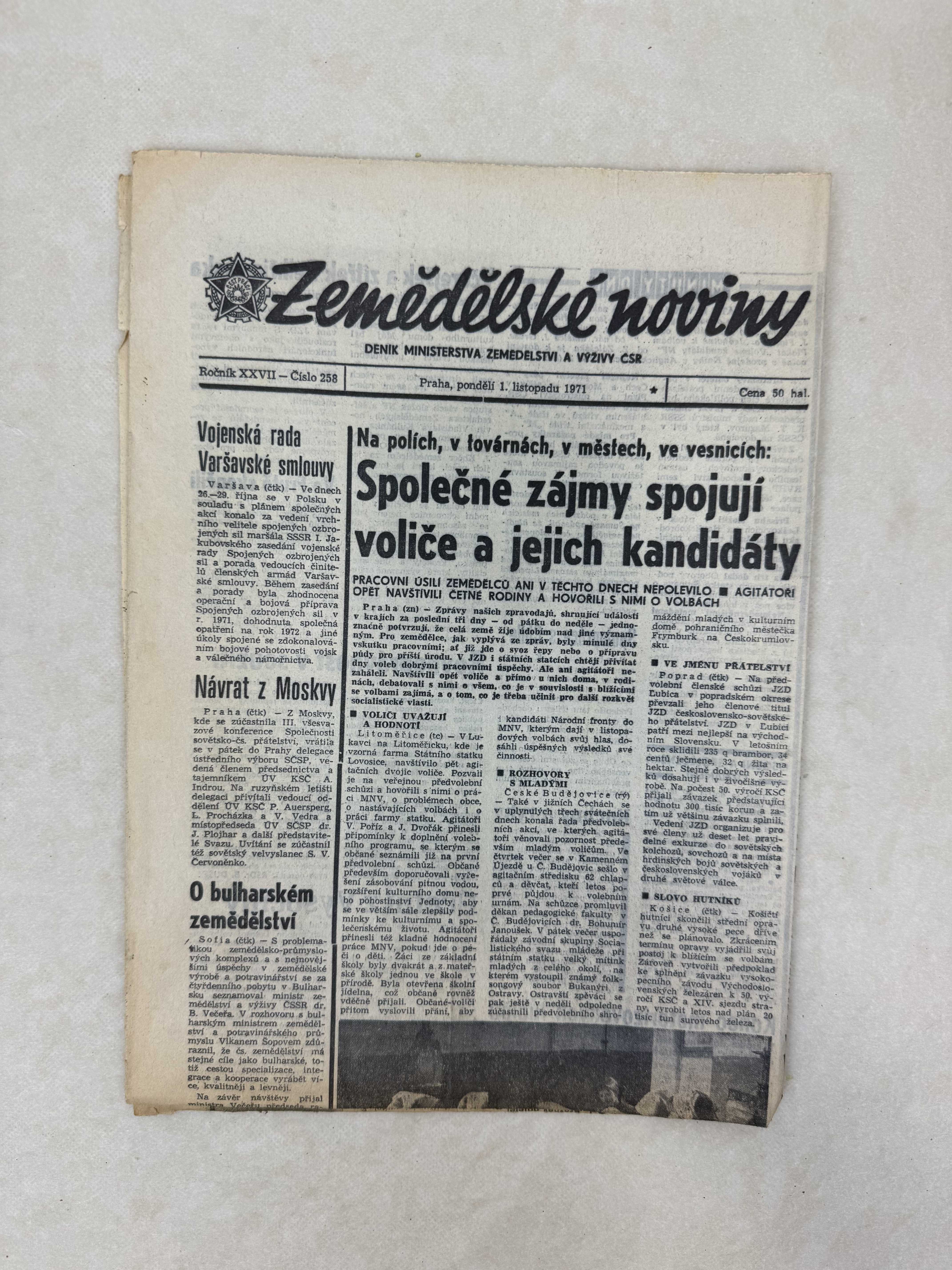 Zemědělské noviny 1.11.1971