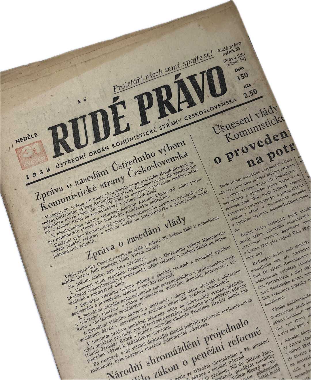 Noviny Rudé právo 31. 5. 1953