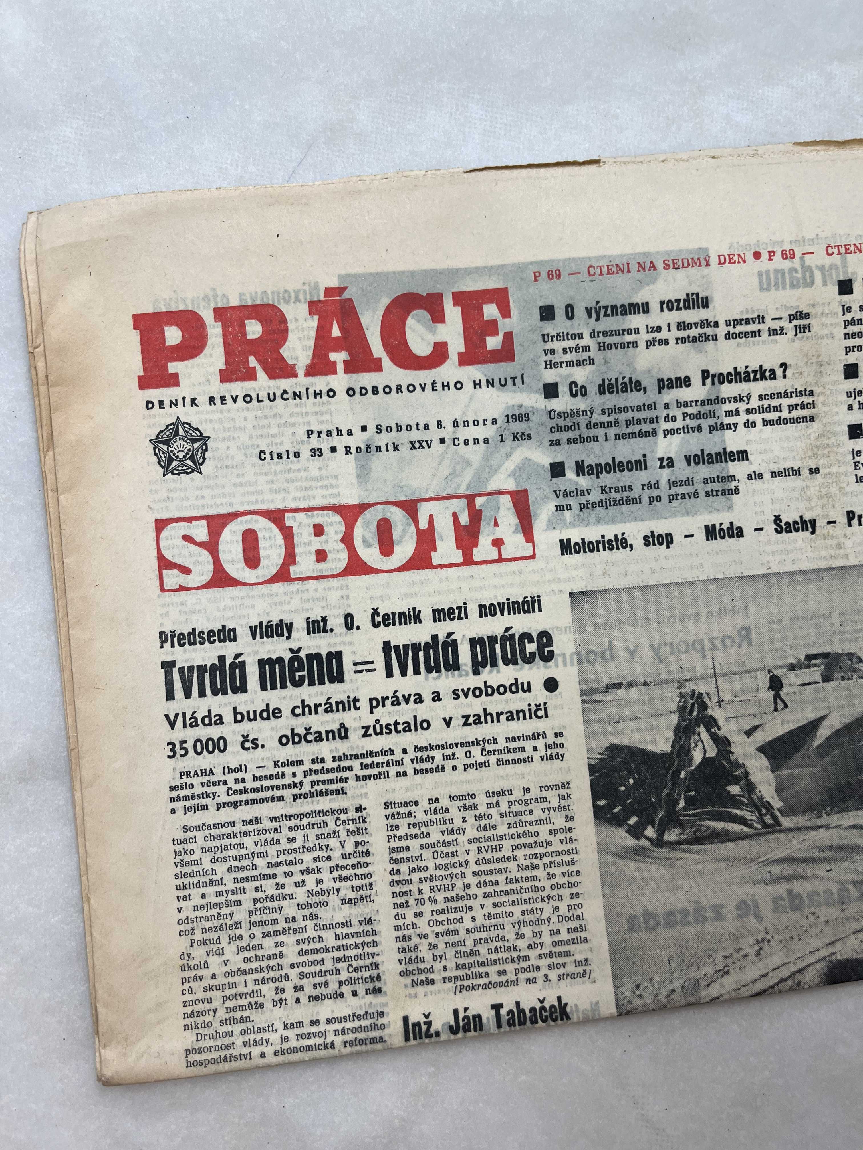 Noviny Práce 8.2.1969