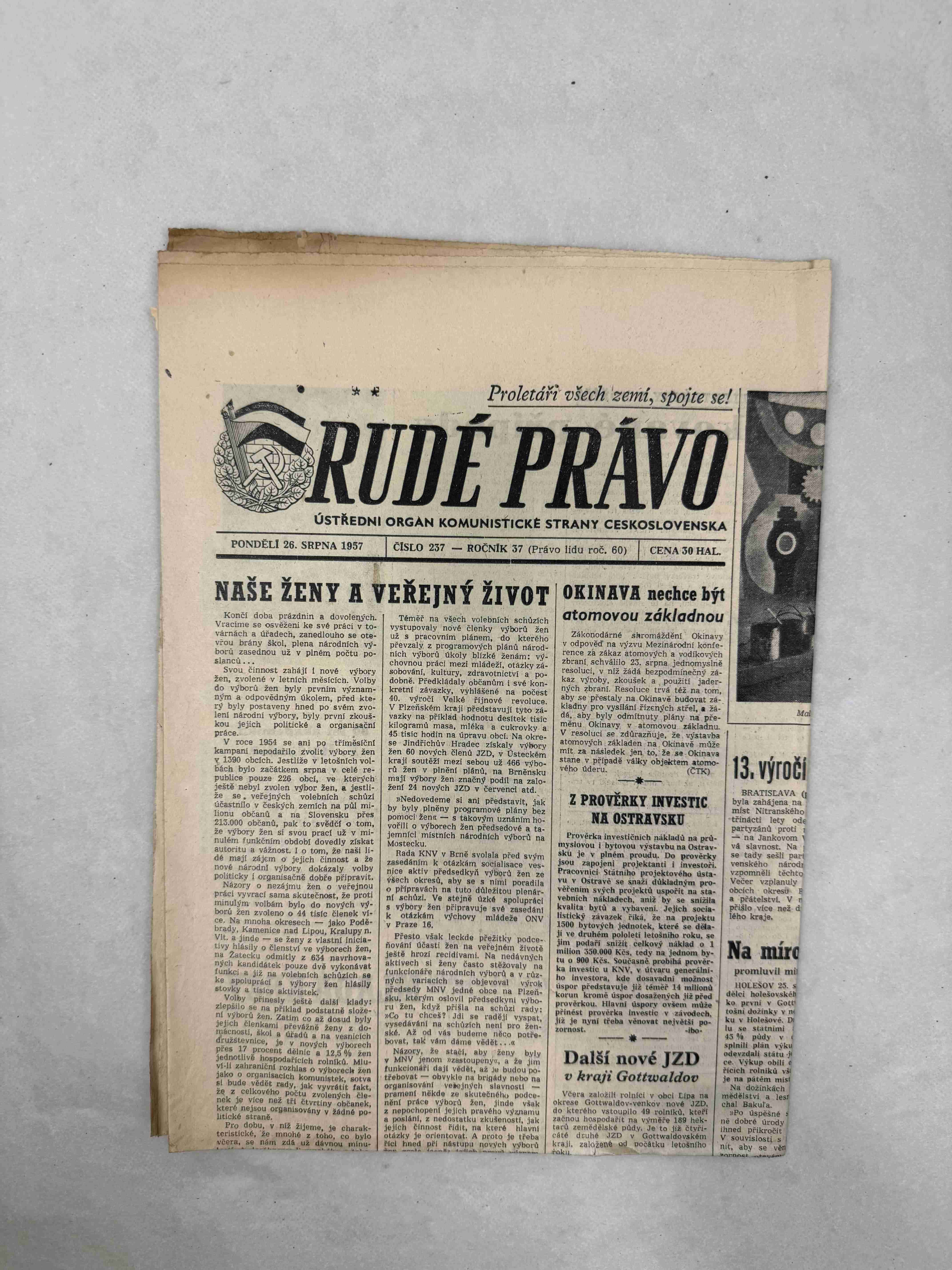 Originální dobový výtisk novin, nejedná se o reprodukci!