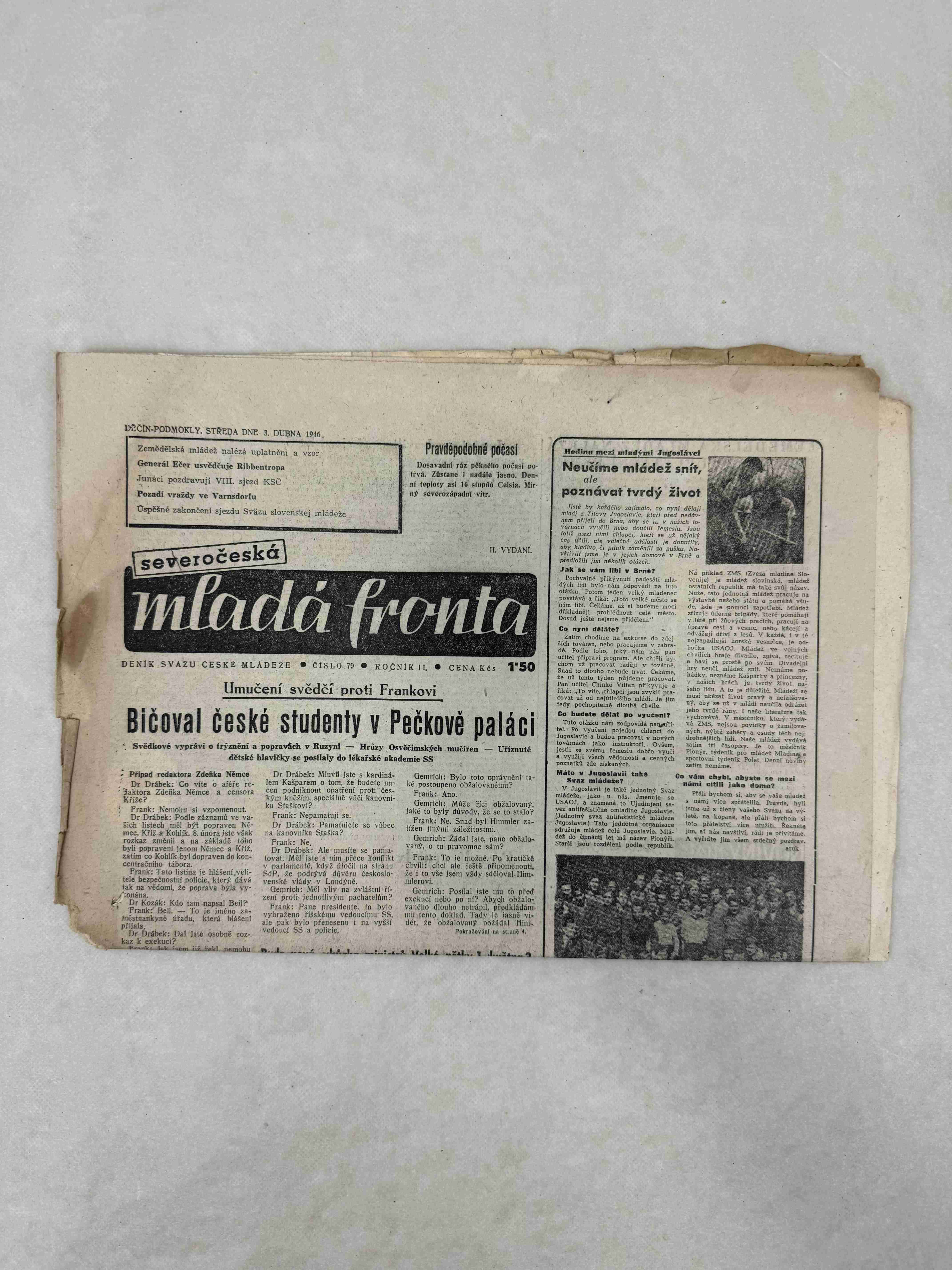 Originální dobový výtisk novin, nejedná se o reprodukci!