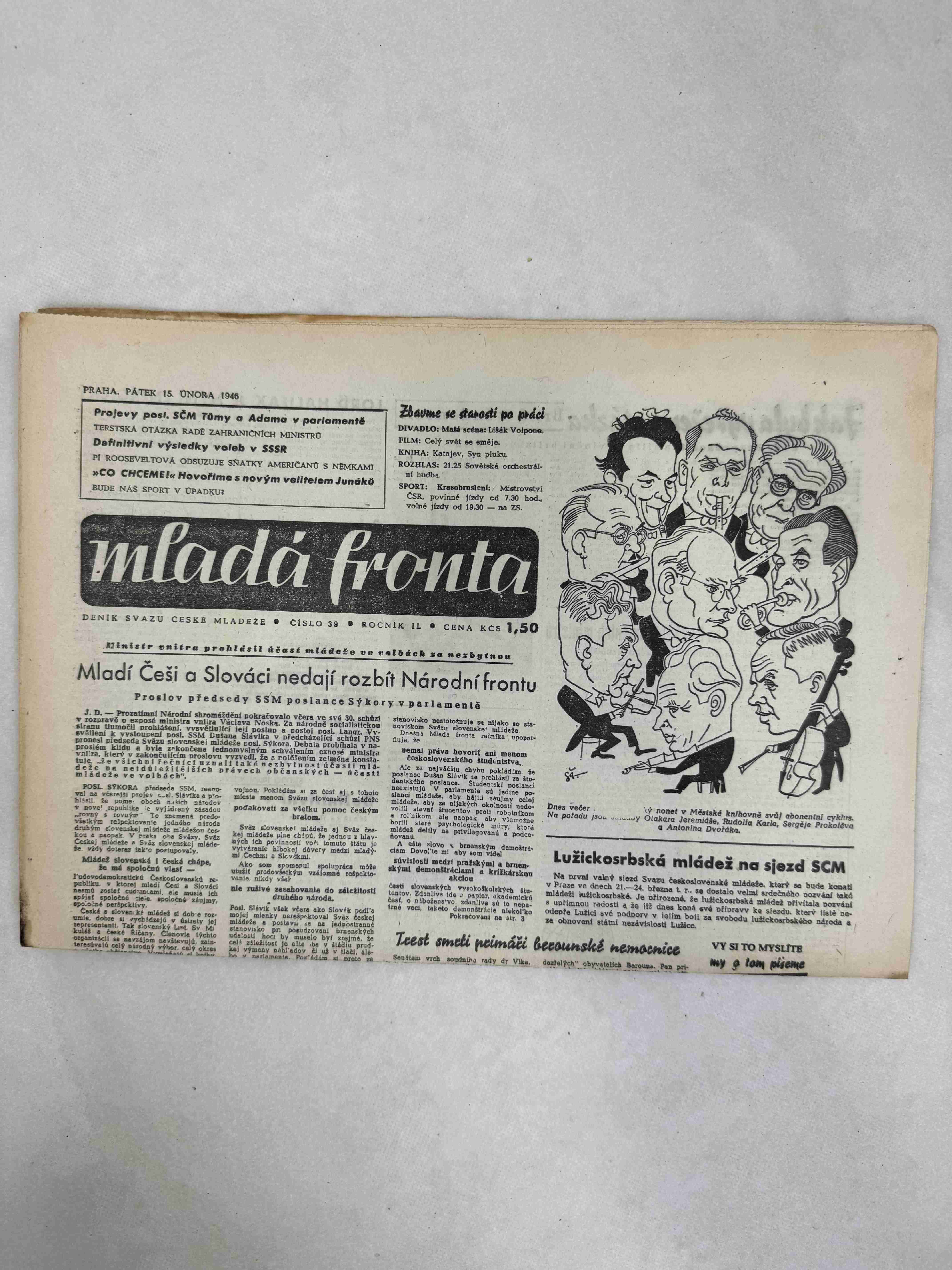 Originální dobový výtisk novin, nejedná se o reprodukci!