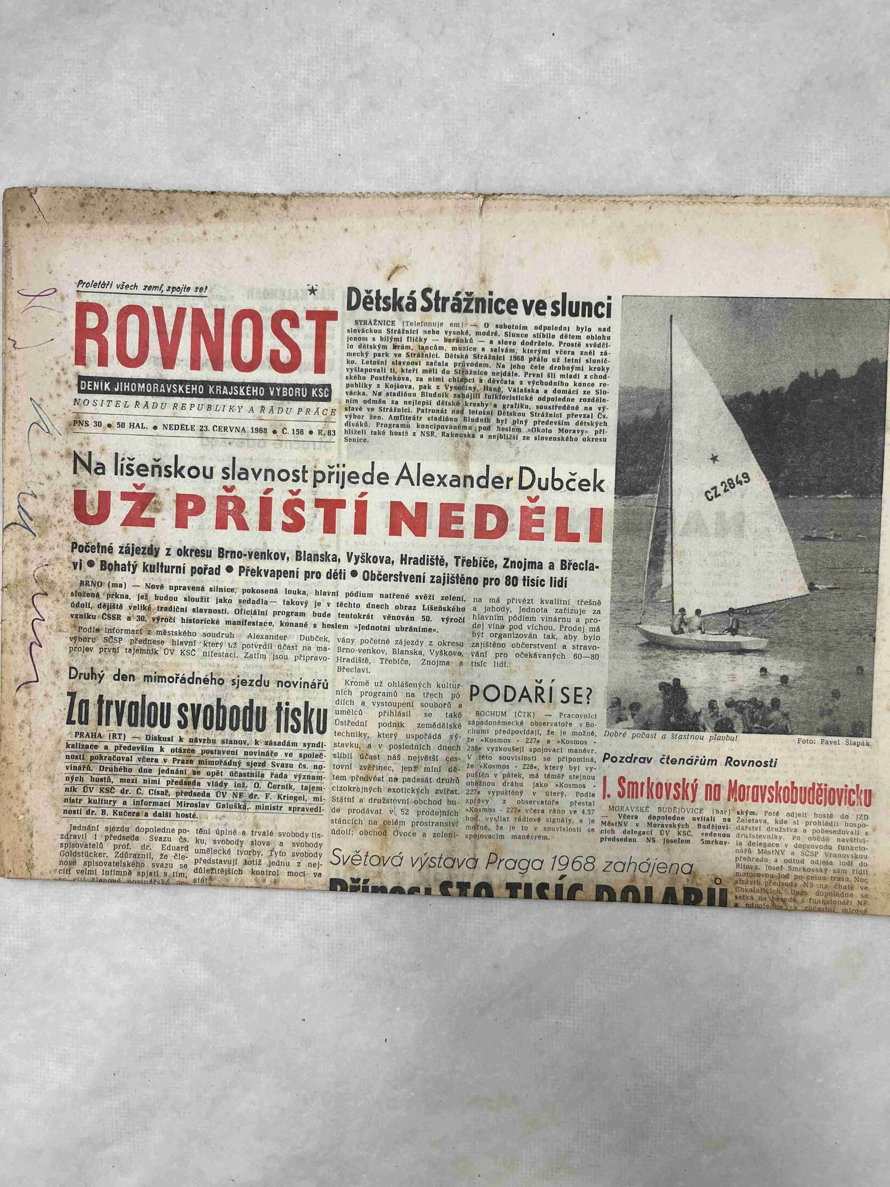 Originální dobový výtisk novin, nejedná se o reprodukci!