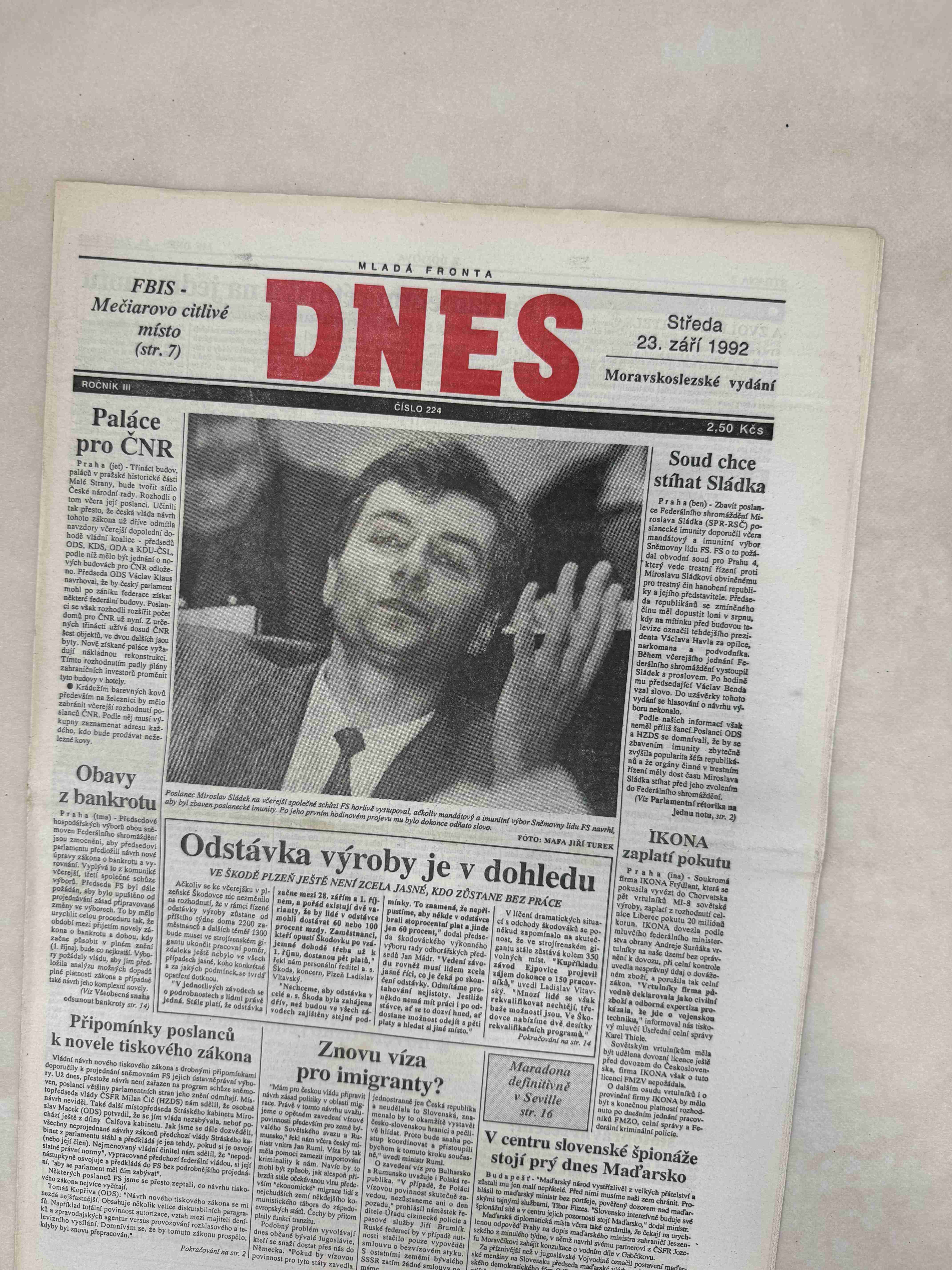 Originální dobový výtisk novin, nejedná se o reprodukci!