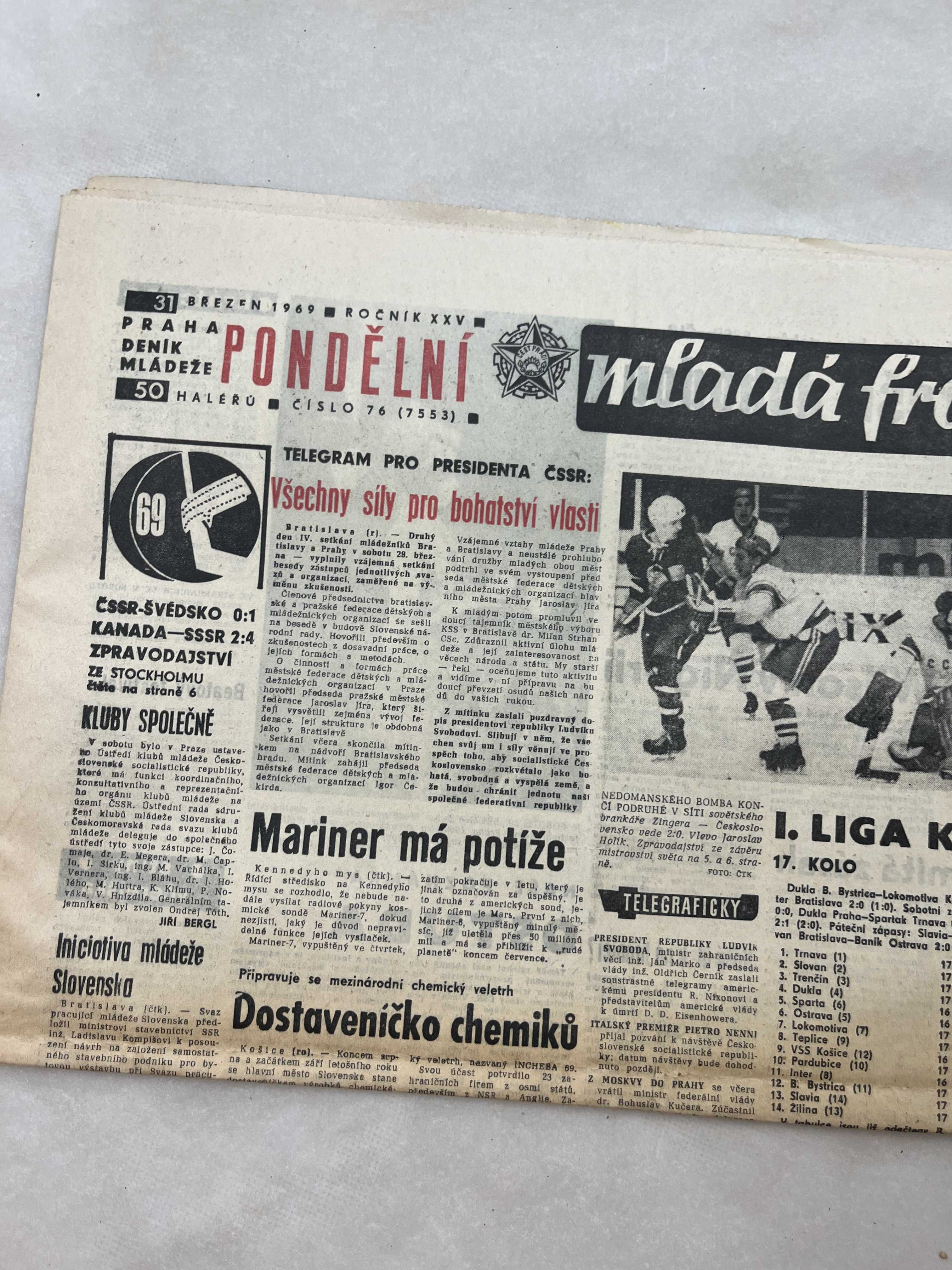 Noviny Mladá fronta 31.3.1969