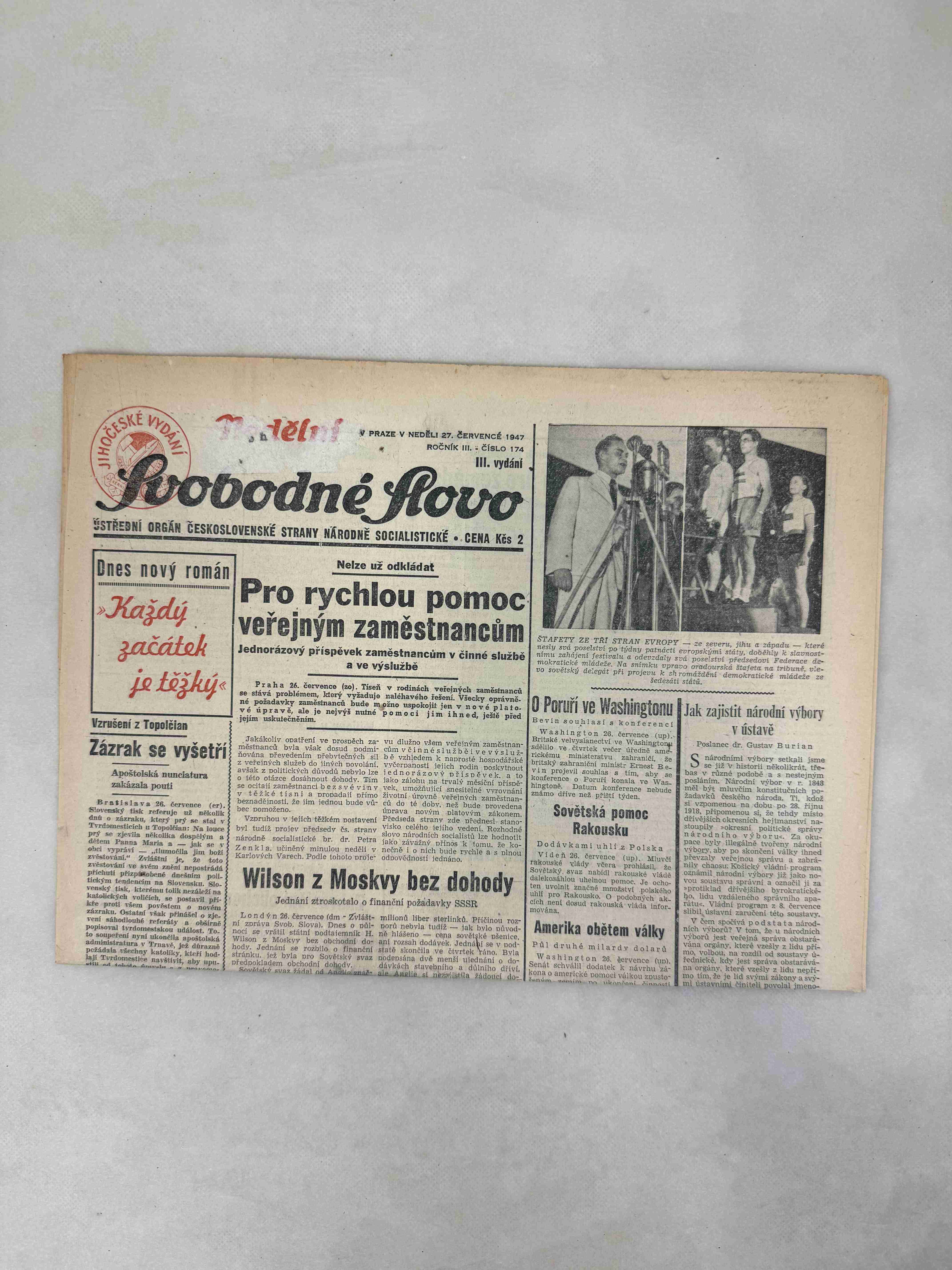 Originální dobový výtisk novin, nejedná se o reprodukci!