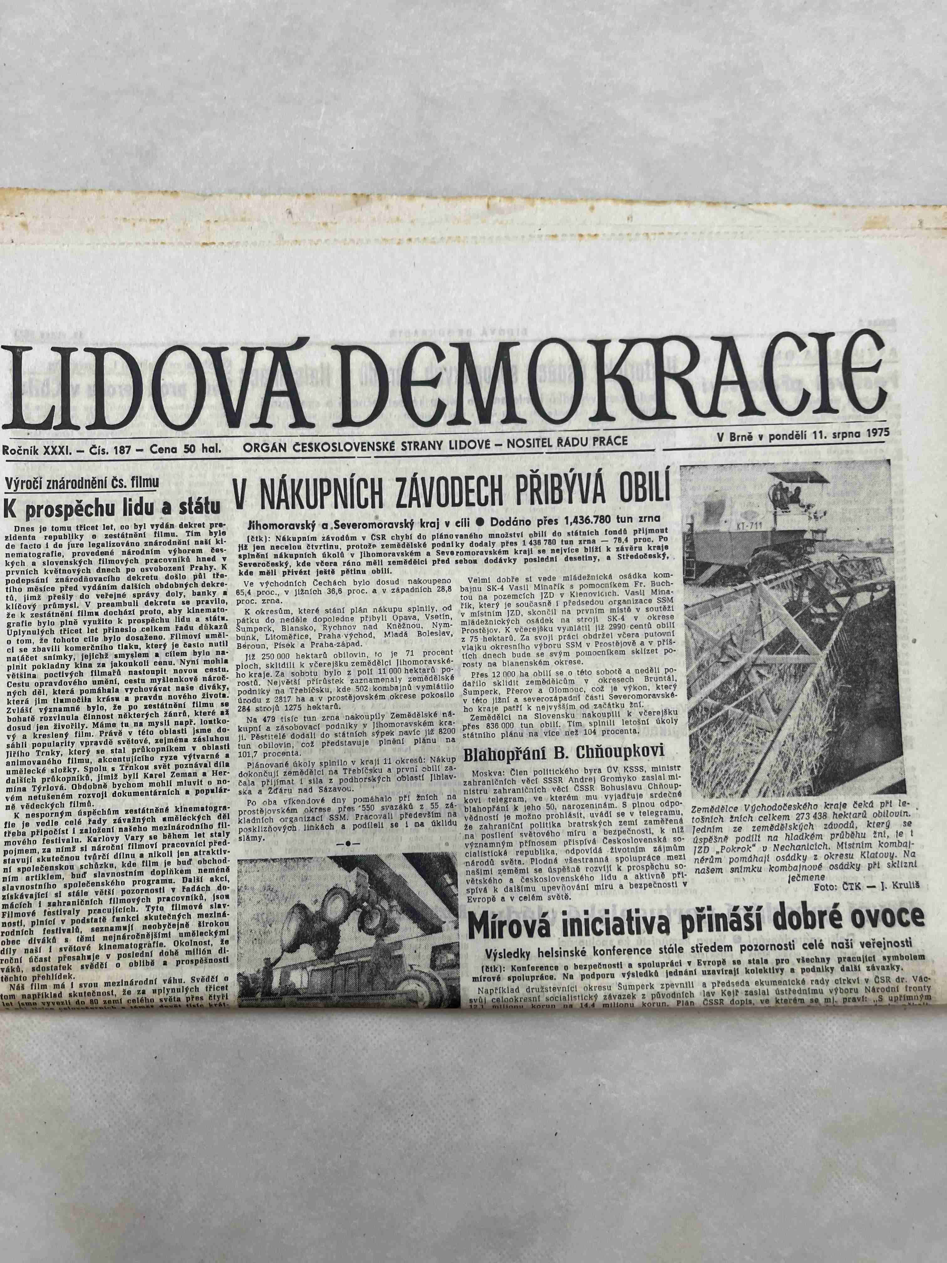 Originální dobový výtisk novin, nejedná se o reprodukci!