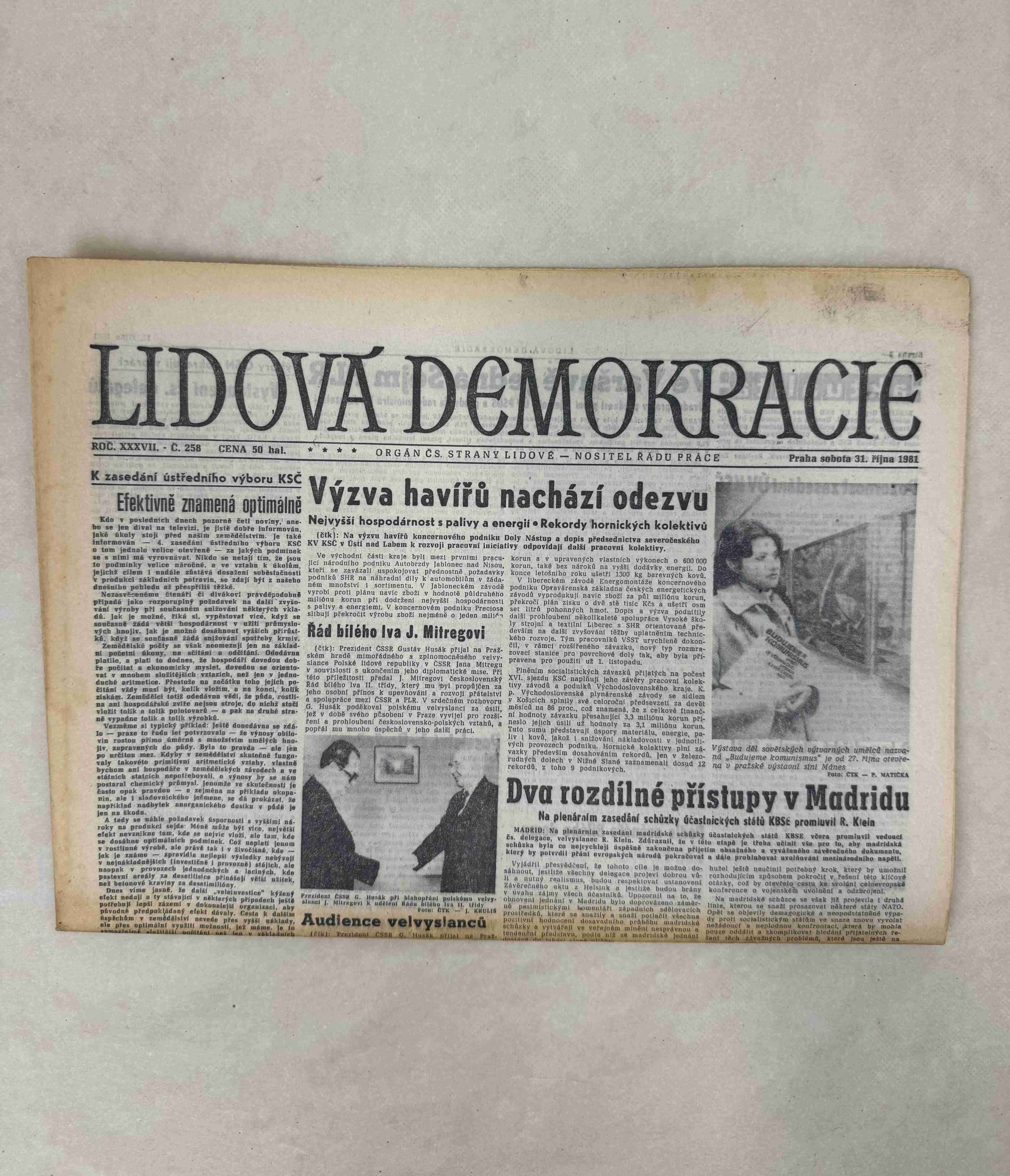 Originální dobový výtisk novin, nejedná se o reprodukci!
