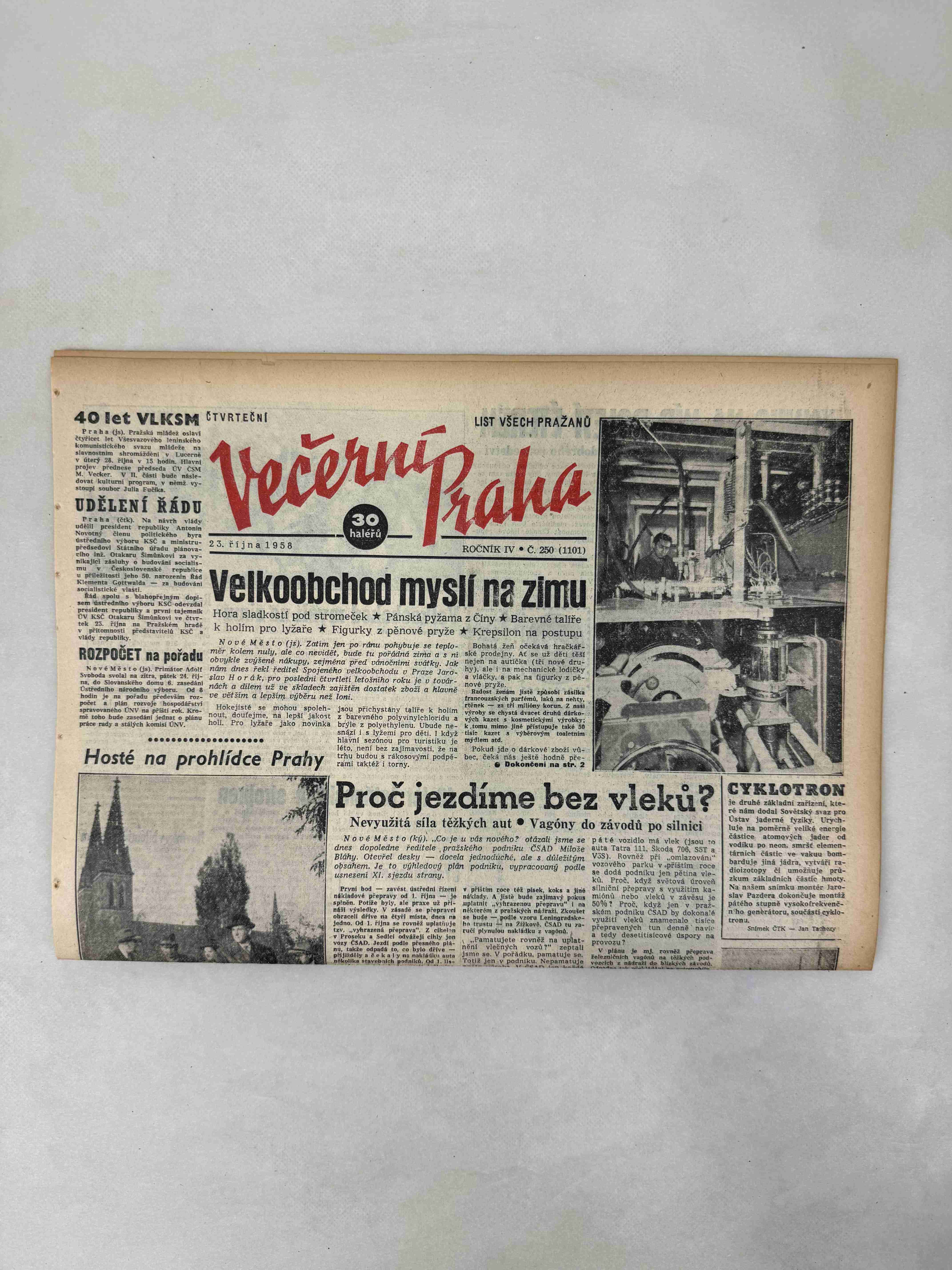 Originální dobový výtisk novin, nejedná se o reprodukci!