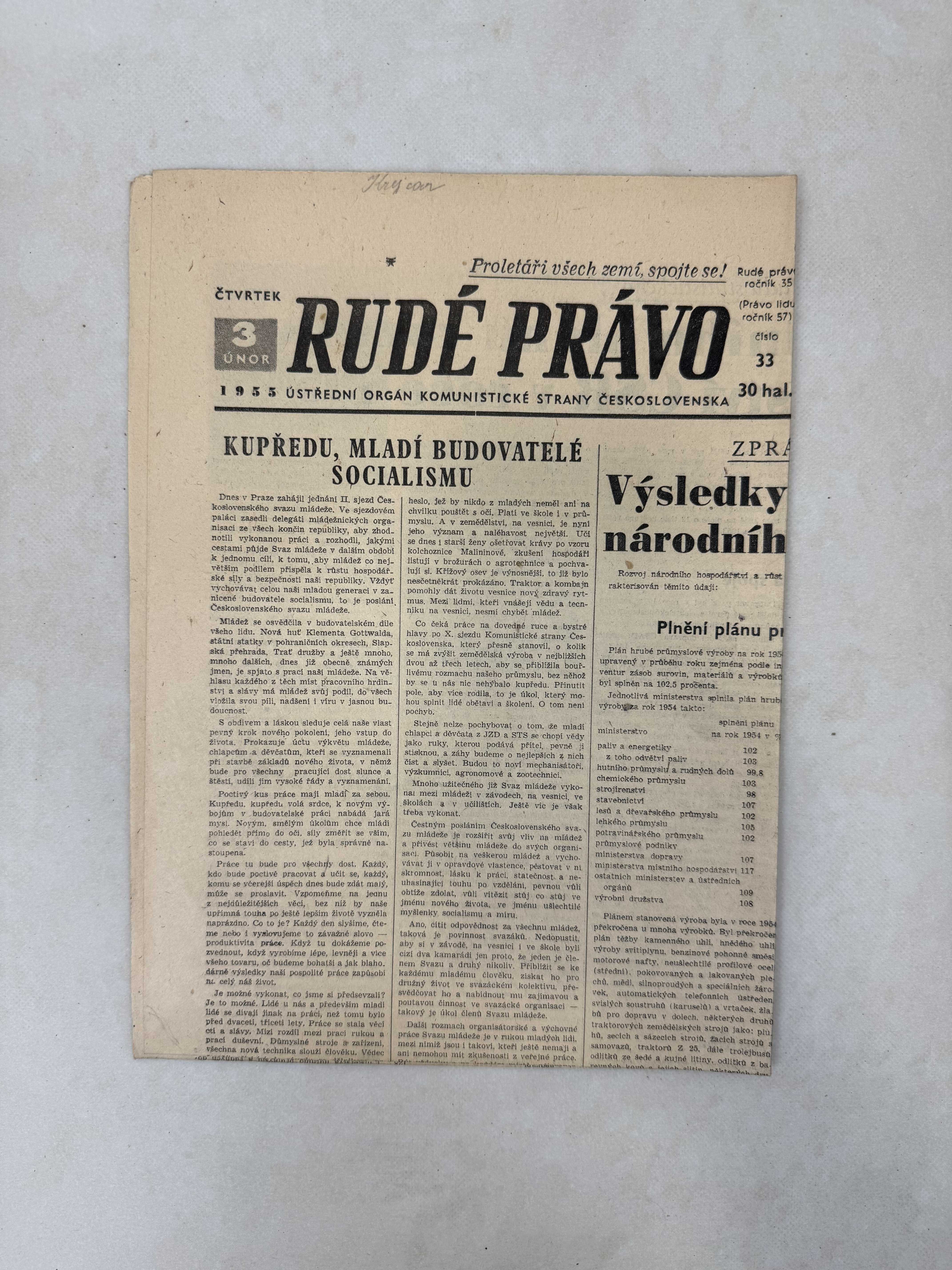 Rudé právo 3.2.1955