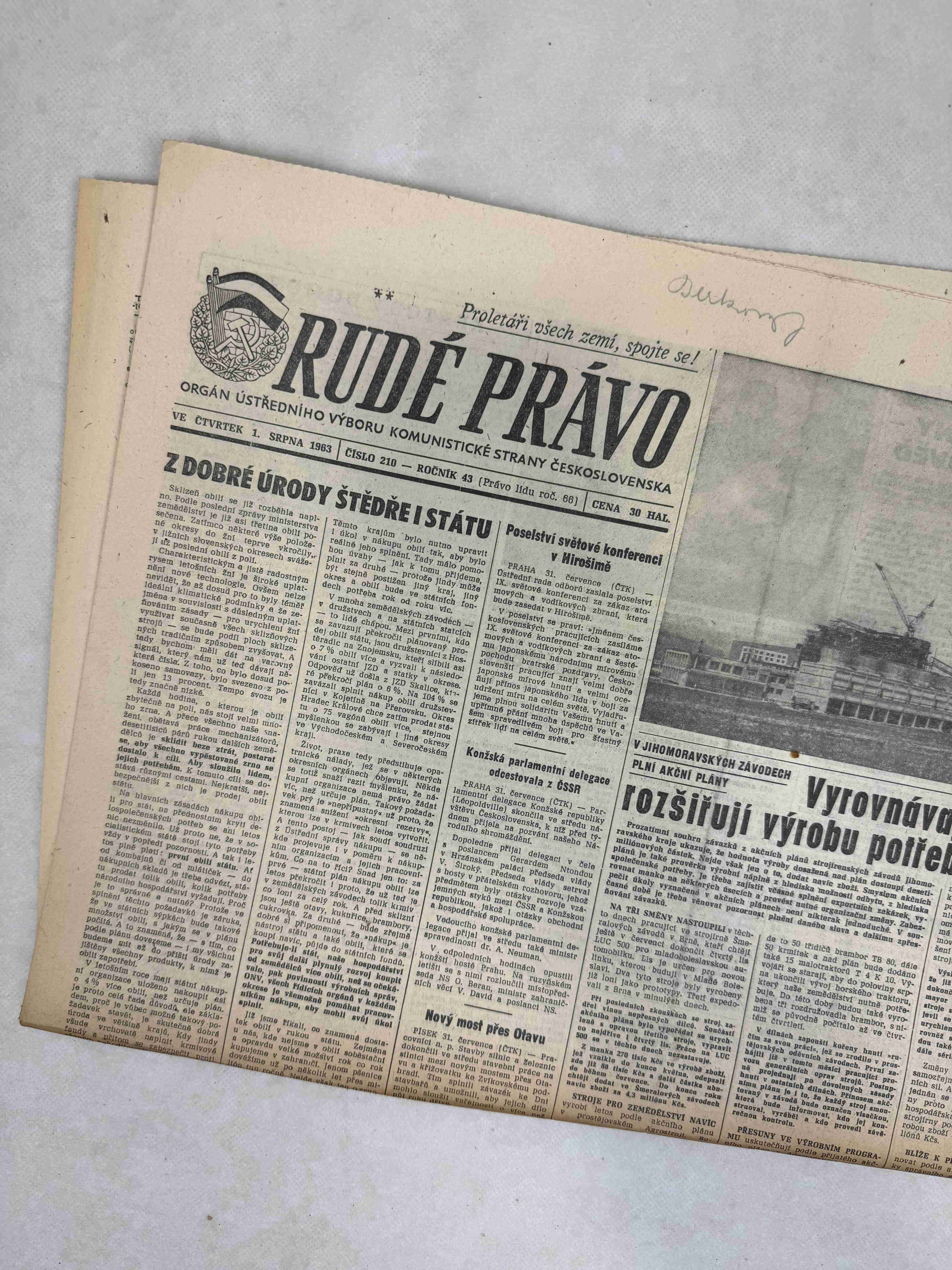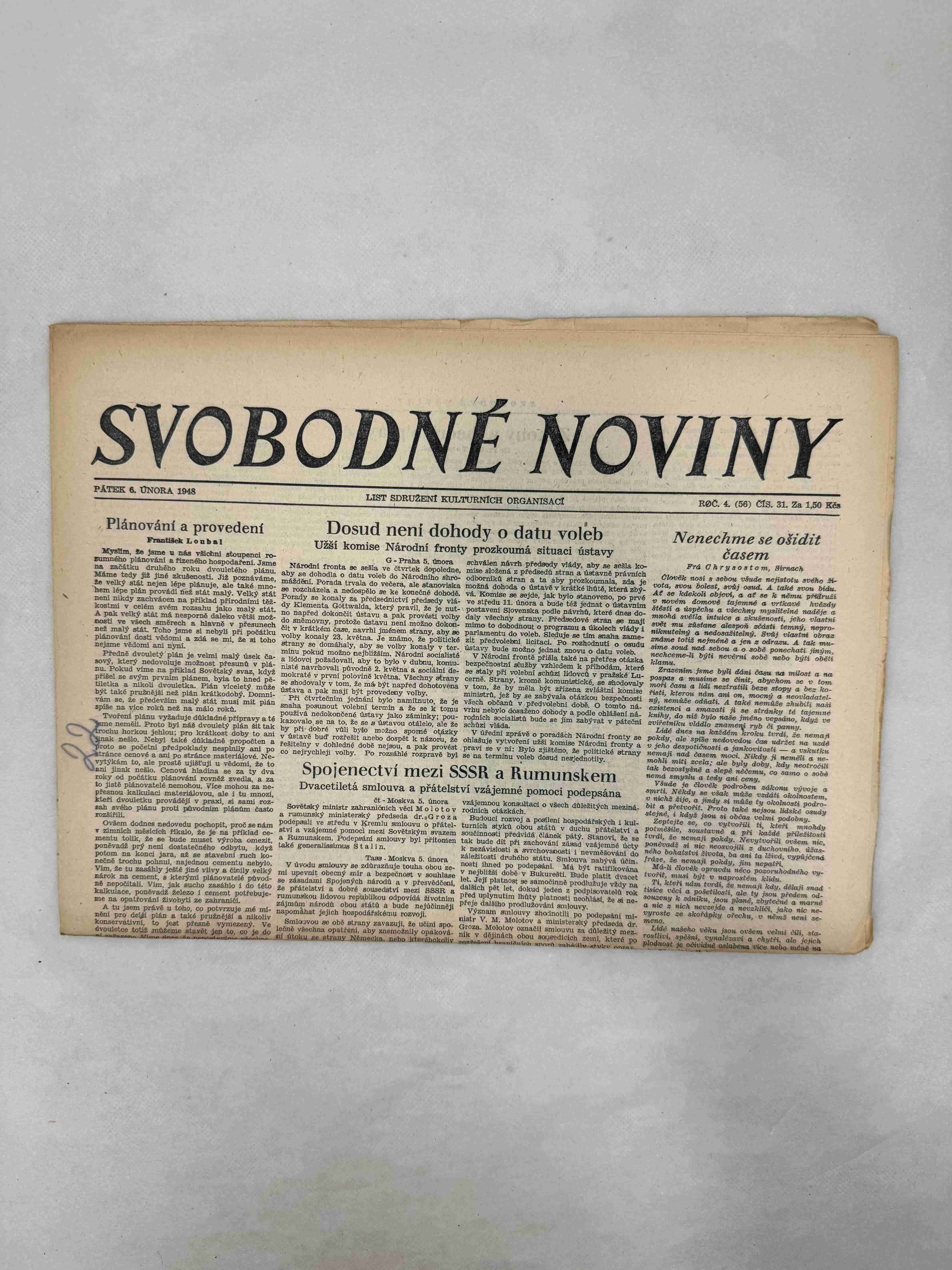 Originální dobový výtisk novin, nejedná se o reprodukci!