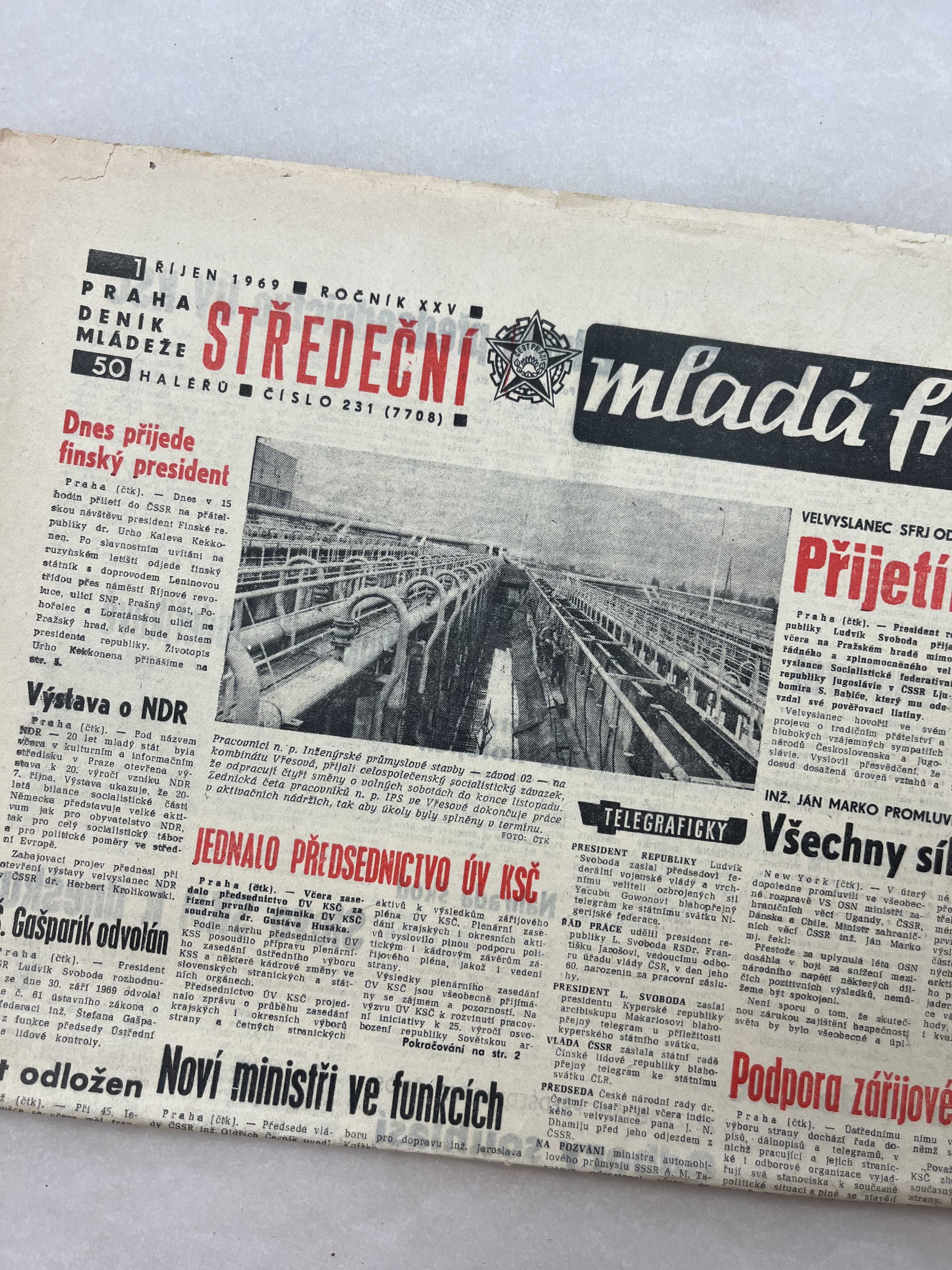 Noviny Mladá fronta 1.10.1969