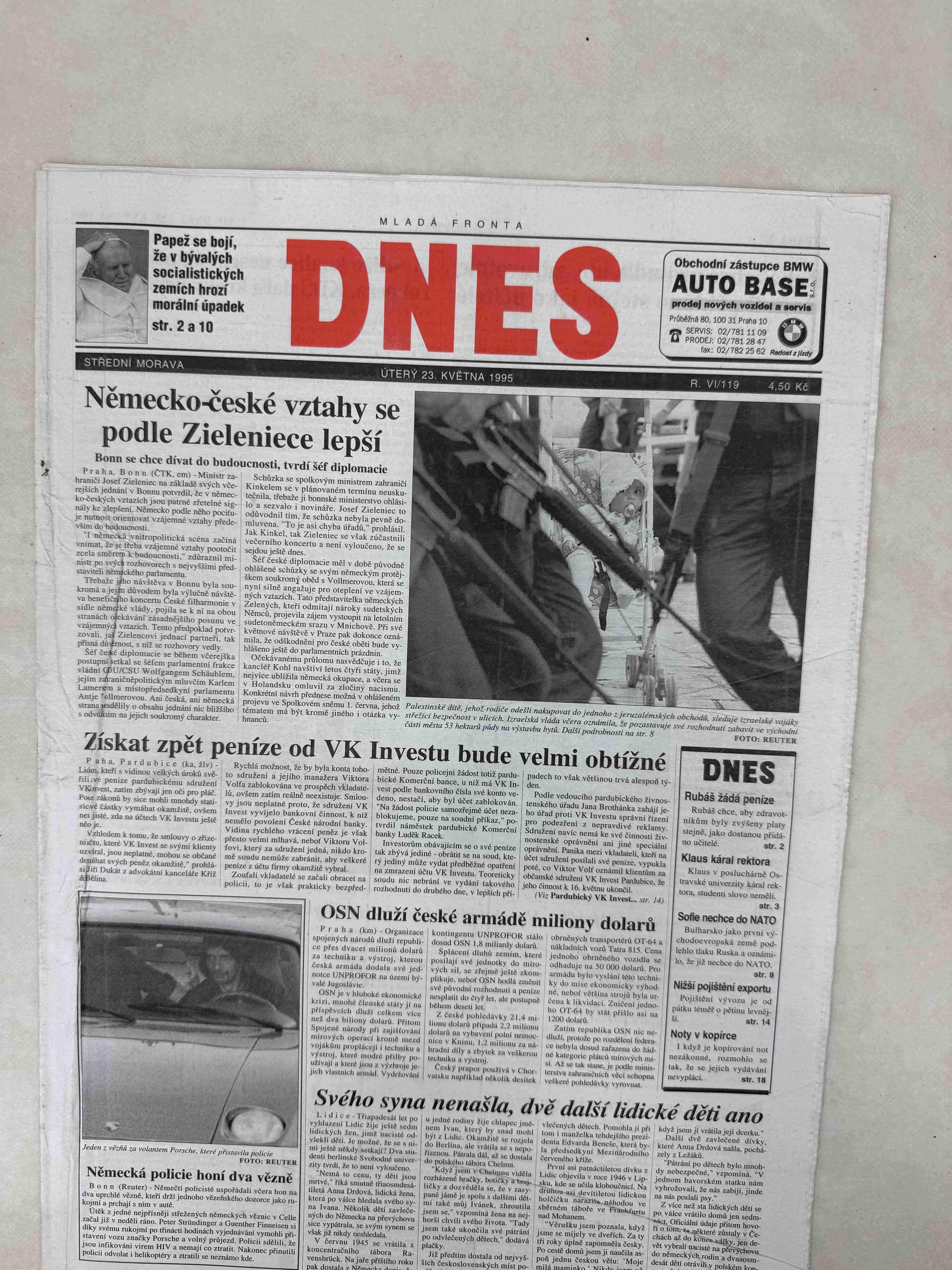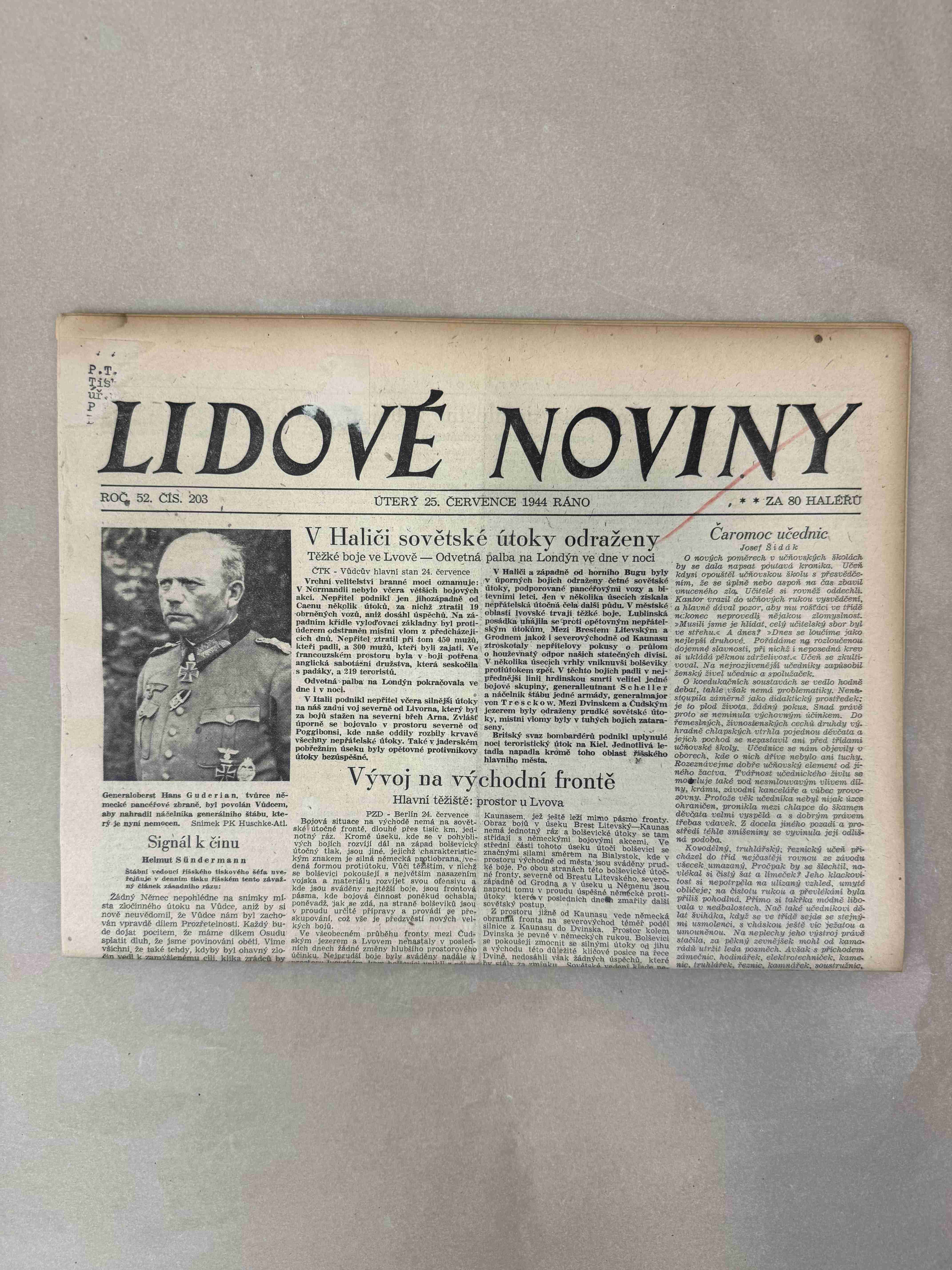 Originální dobový výtisk novin, nejedná se o reprodukci!