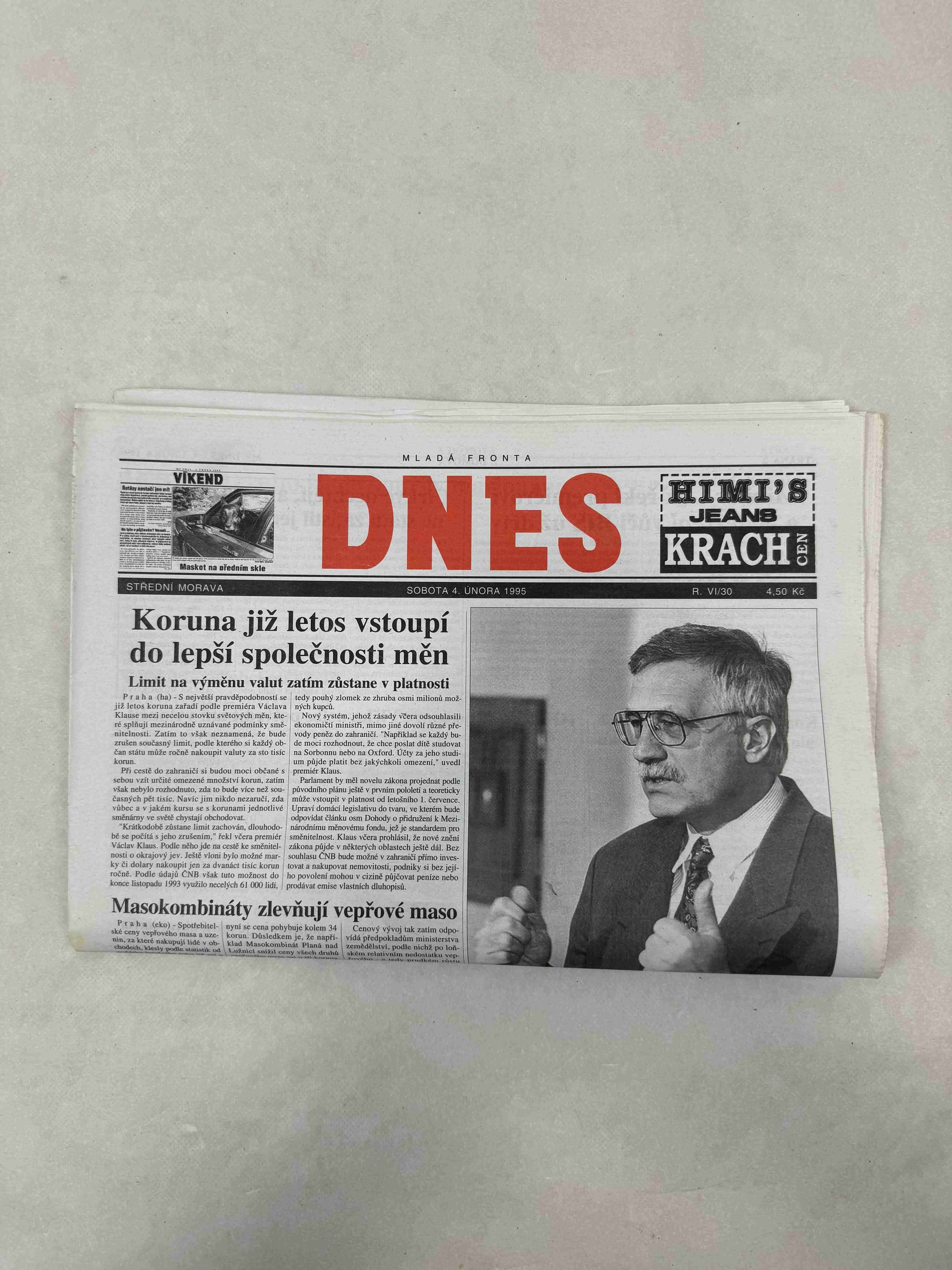 Originální dobový výtisk novin, nejedná se o reprodukci!