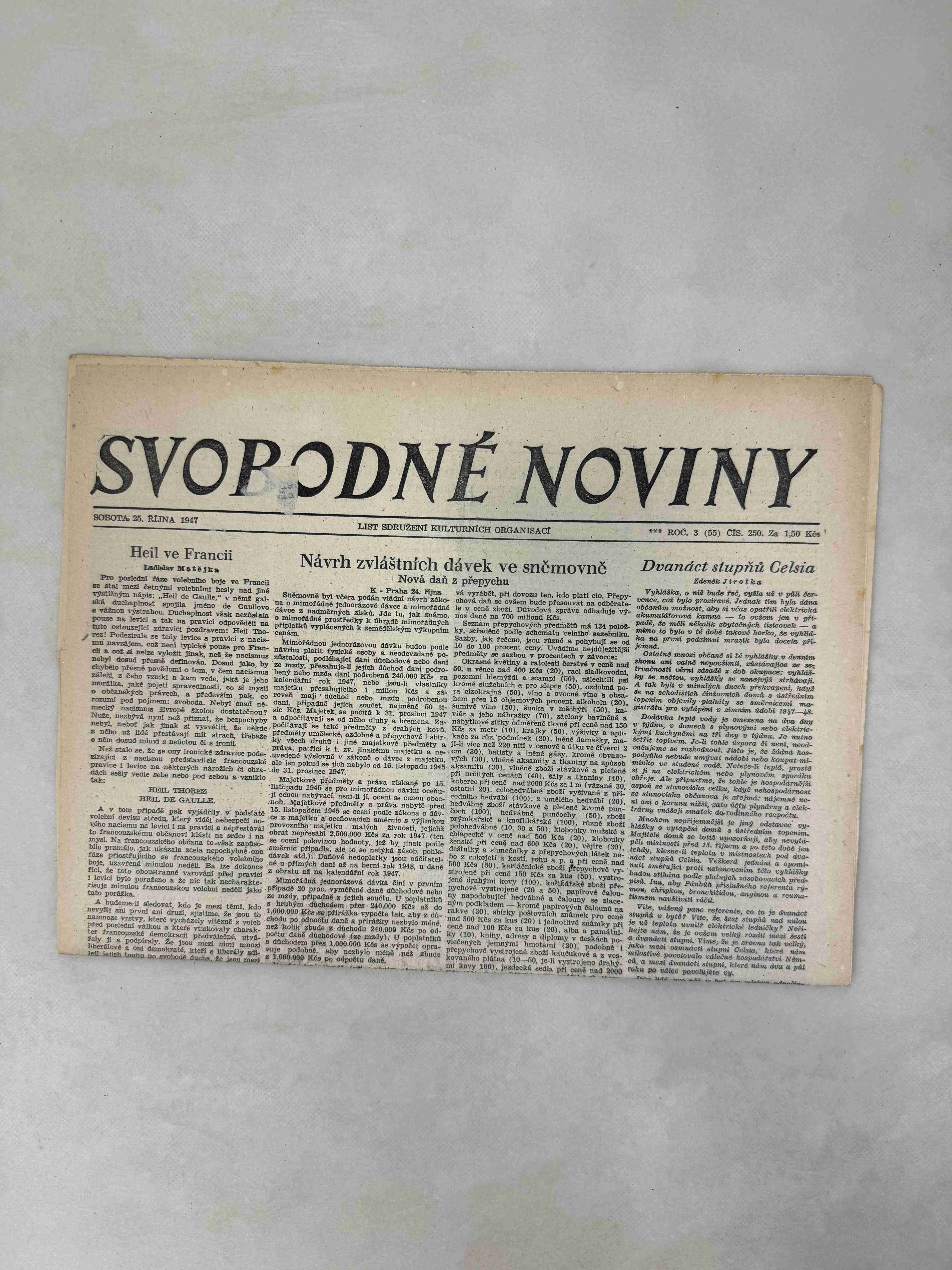 Originální dobový výtisk novin, nejedná se o reprodukci!