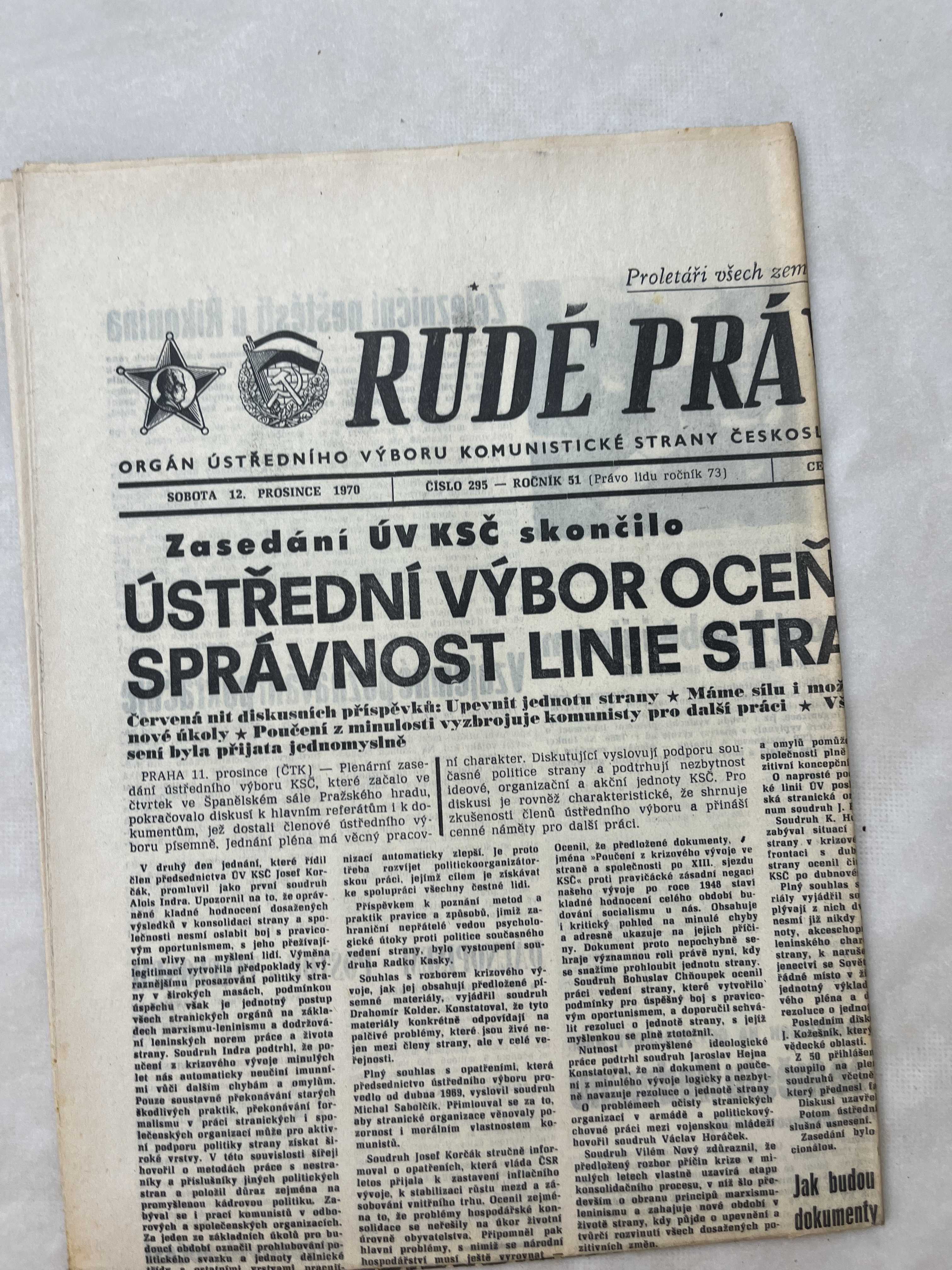 Noviny Rudé právo 12.12.1970