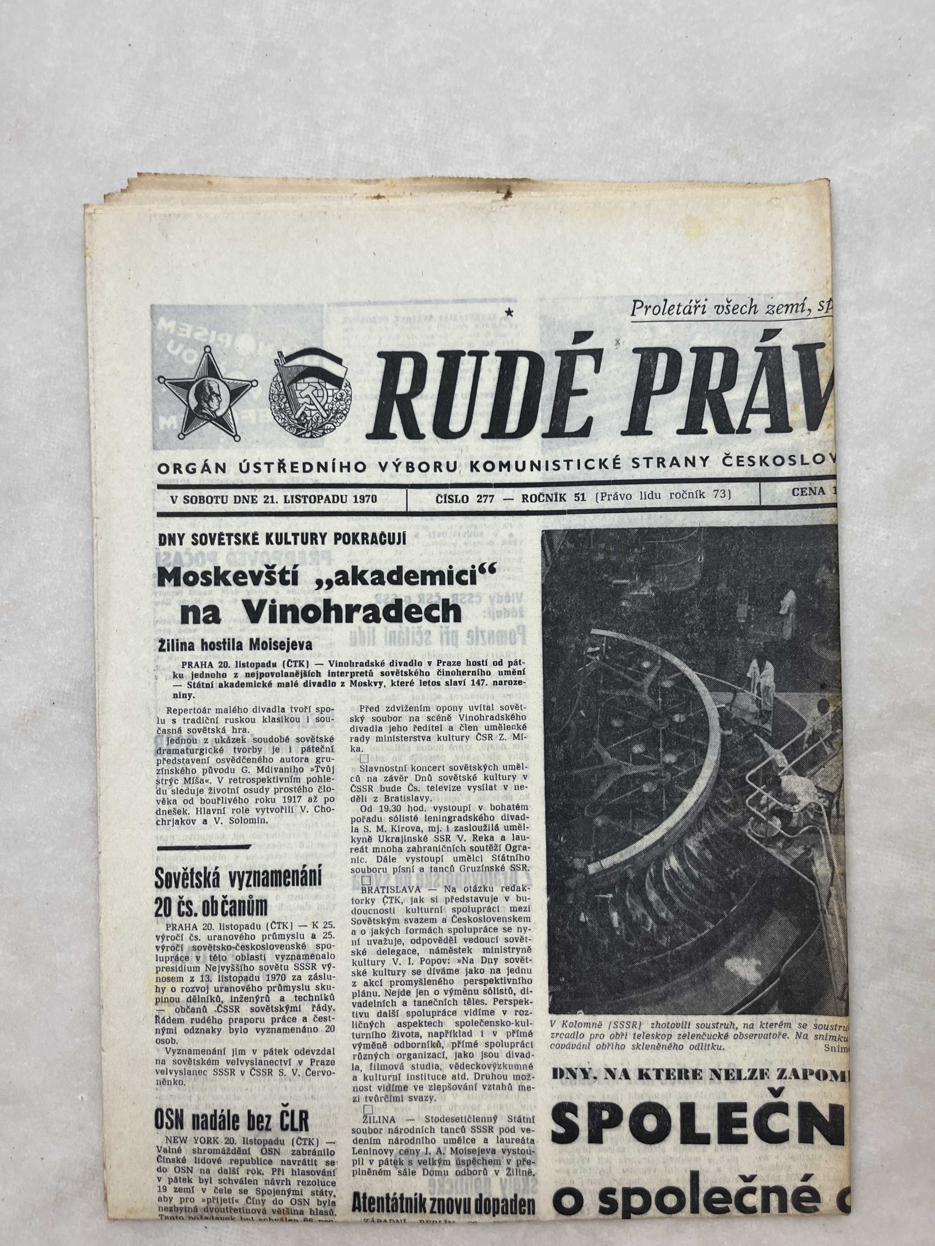 Noviny Rudé právo 21.11.1970