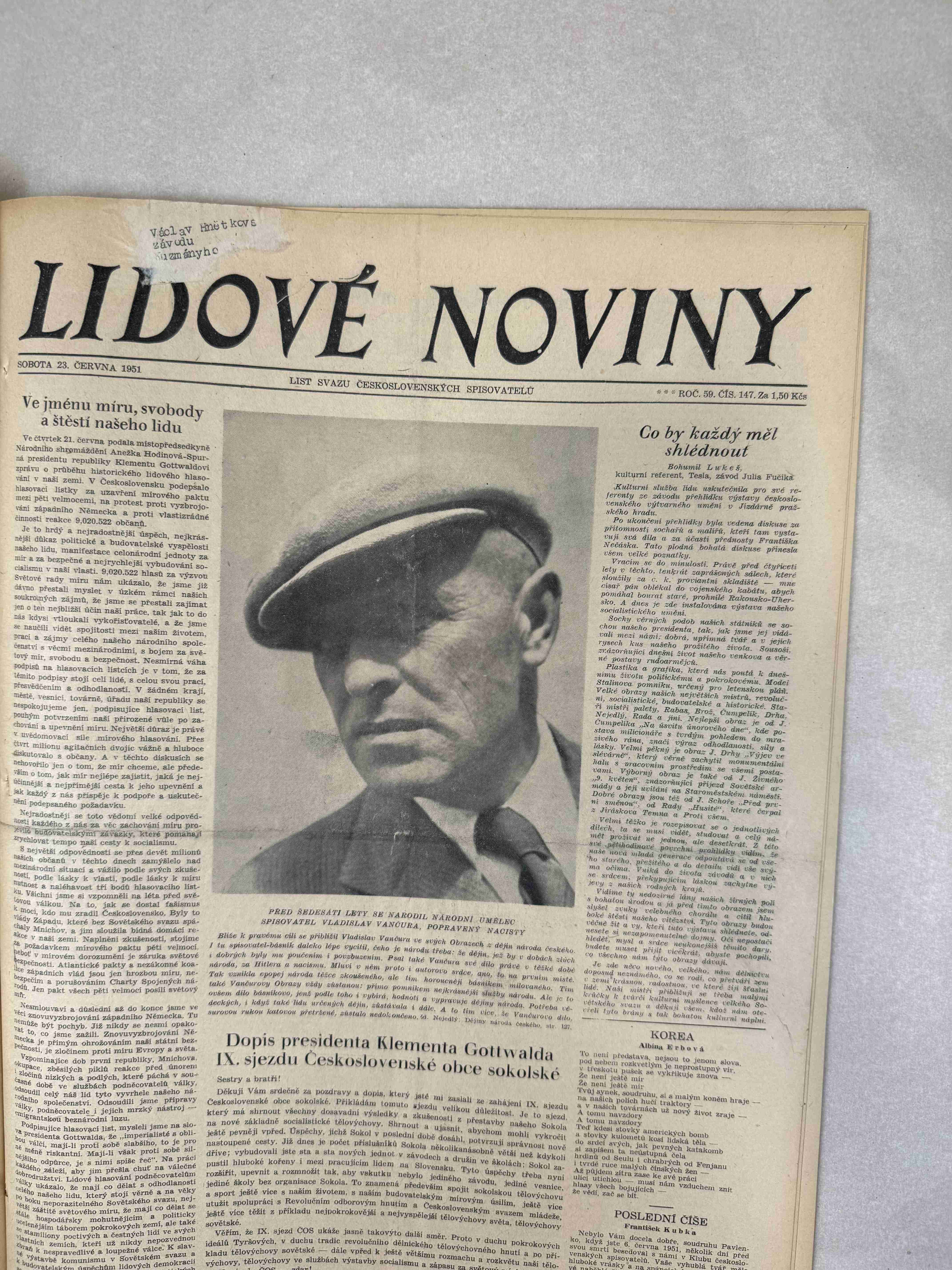 Originální dobový výtisk novin, nejedná se o reprodukci!