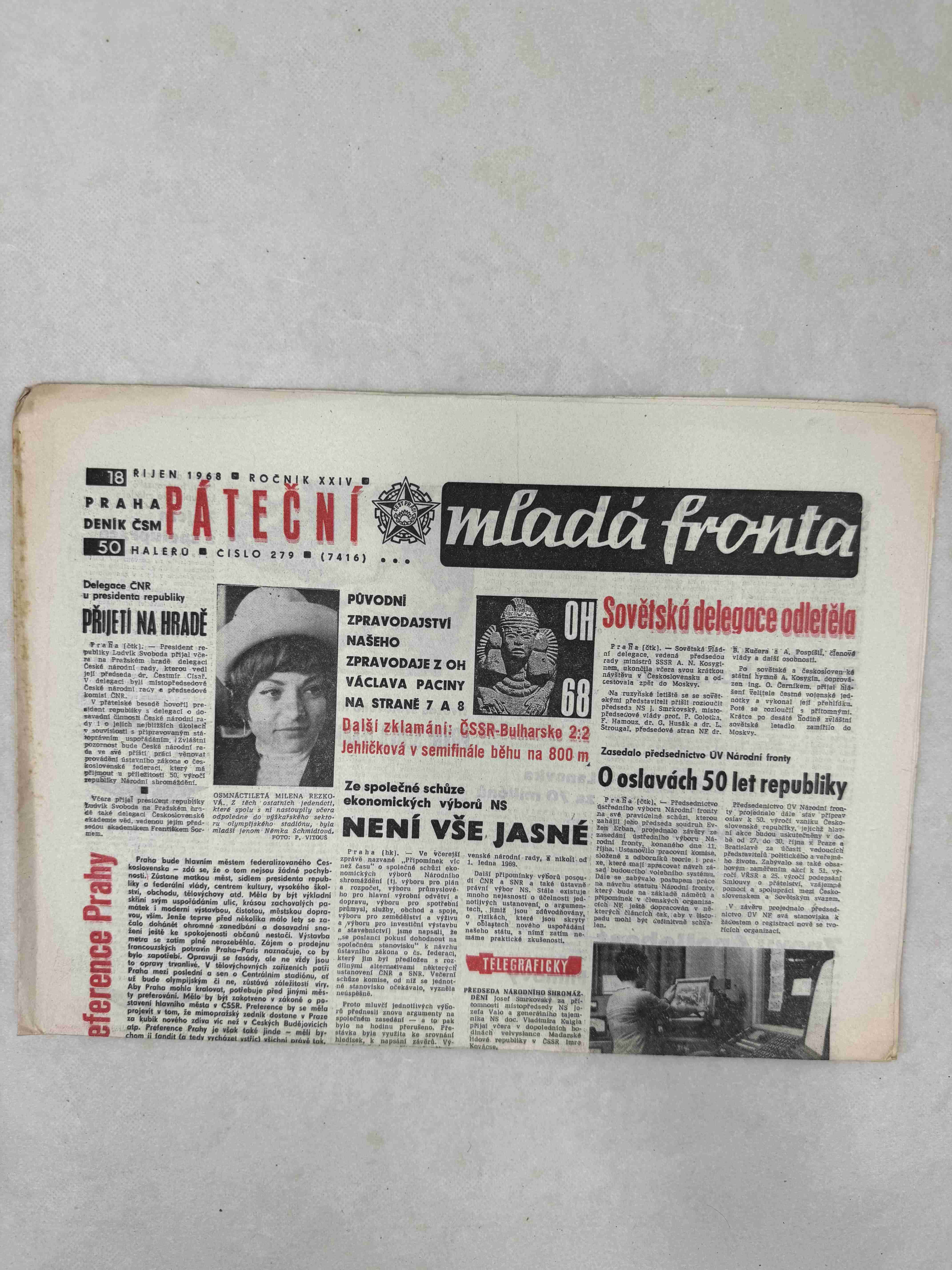 Originální dobový výtisk novin, nejedná se o reprodukci!