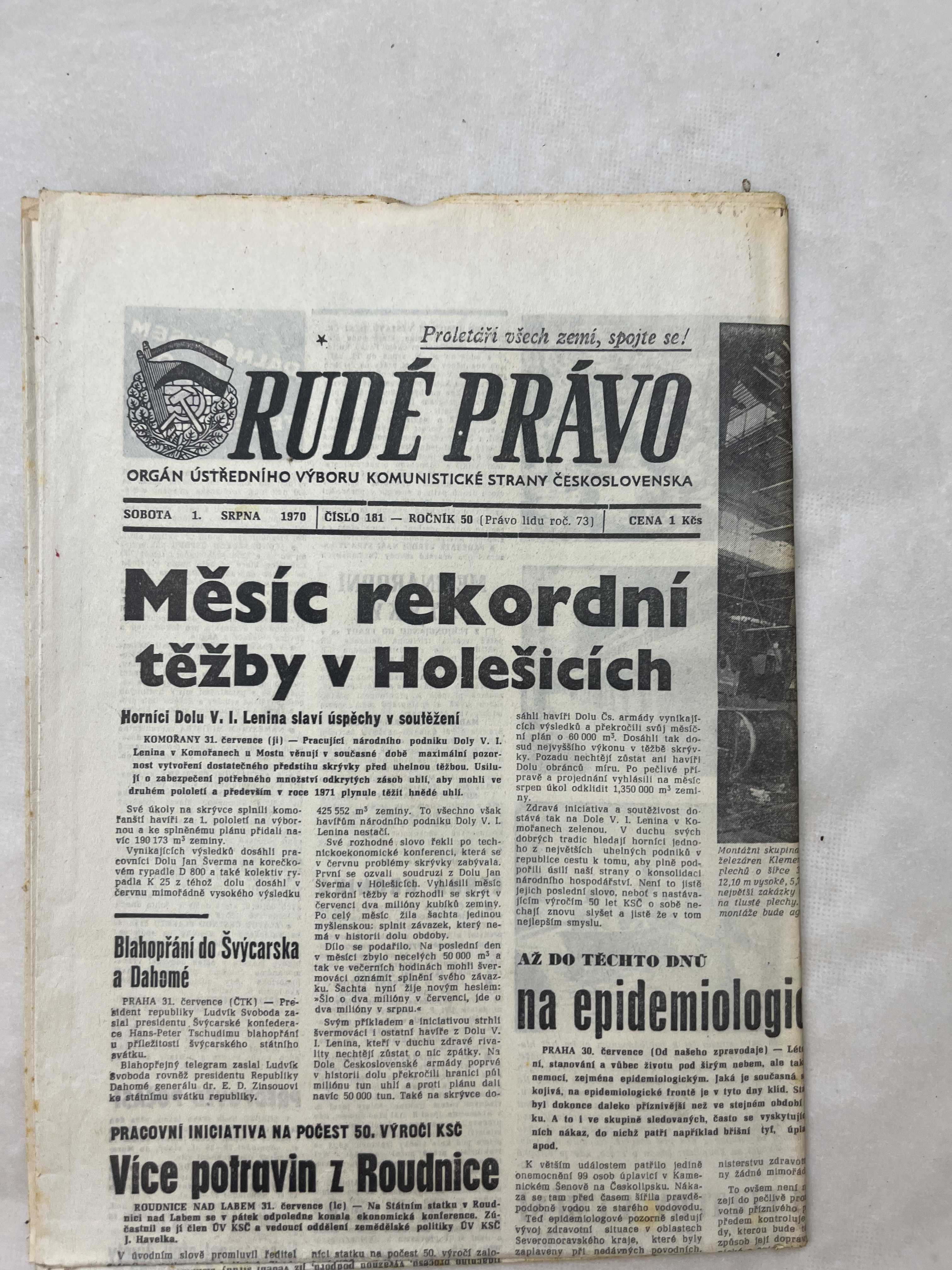 Noviny Rudé právo 1.8.1970