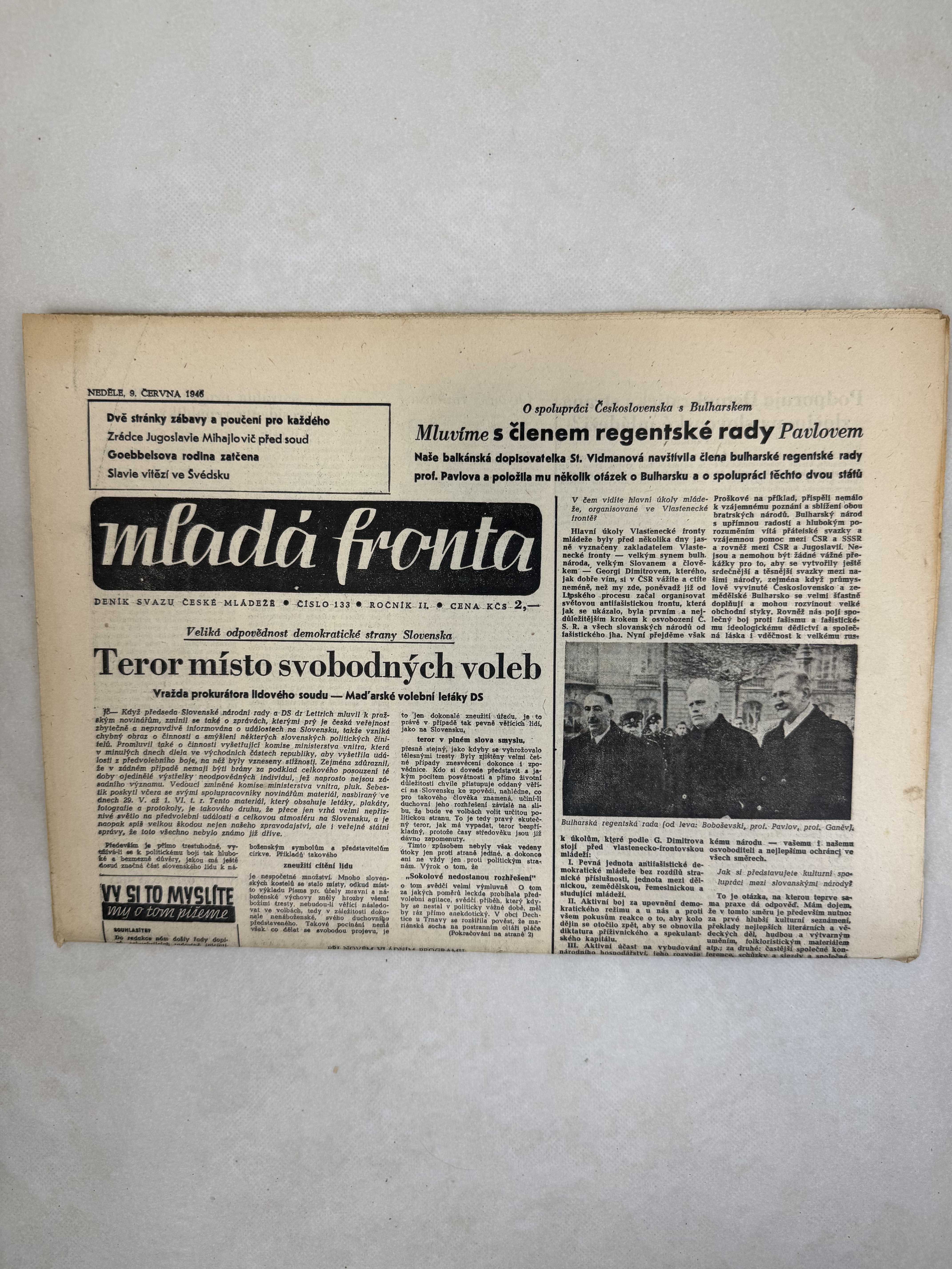 Originální dobový výtisk novin, nejedná se o reprodukci!