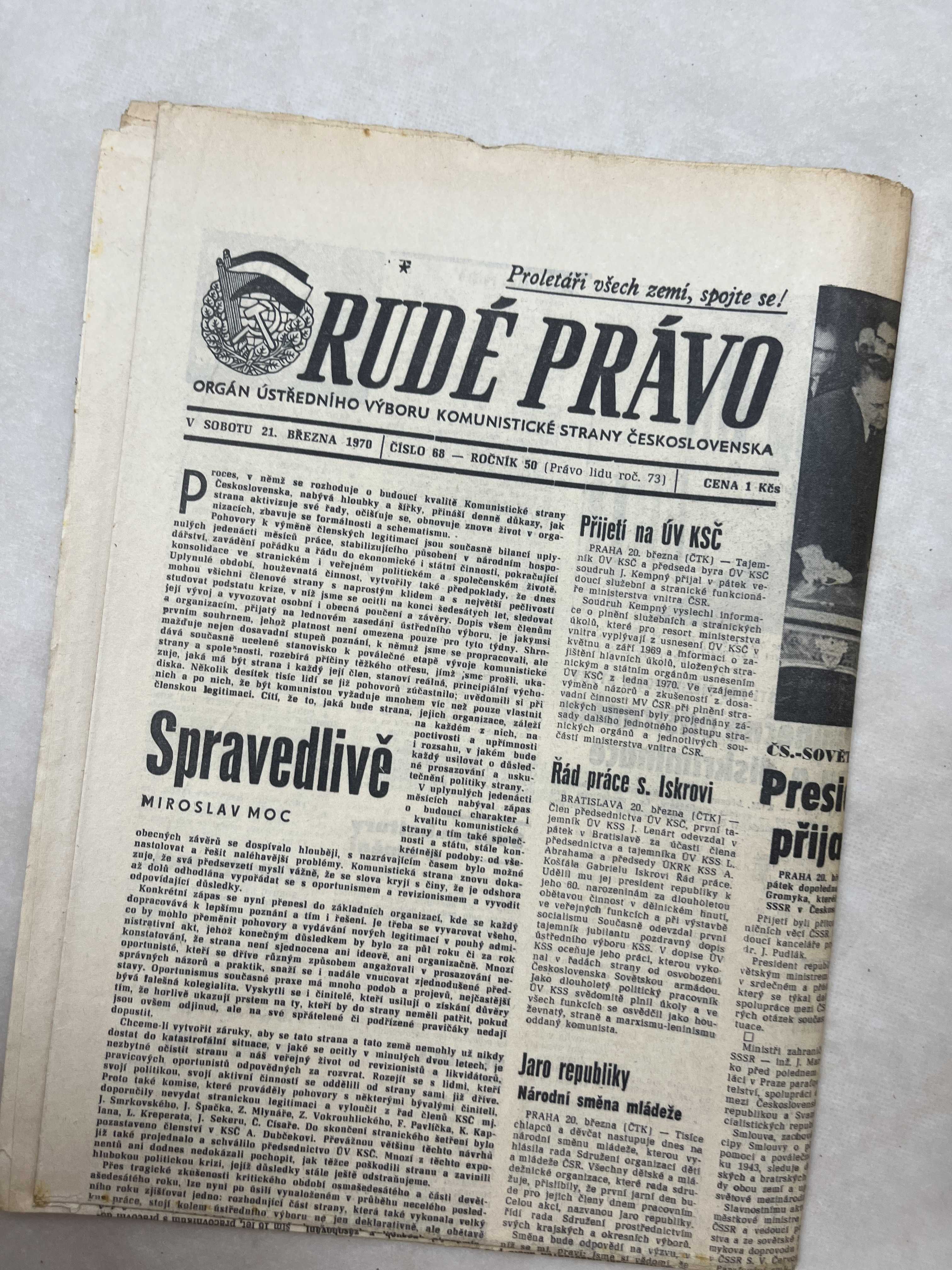 Noviny Rudé právo 21.3.1970