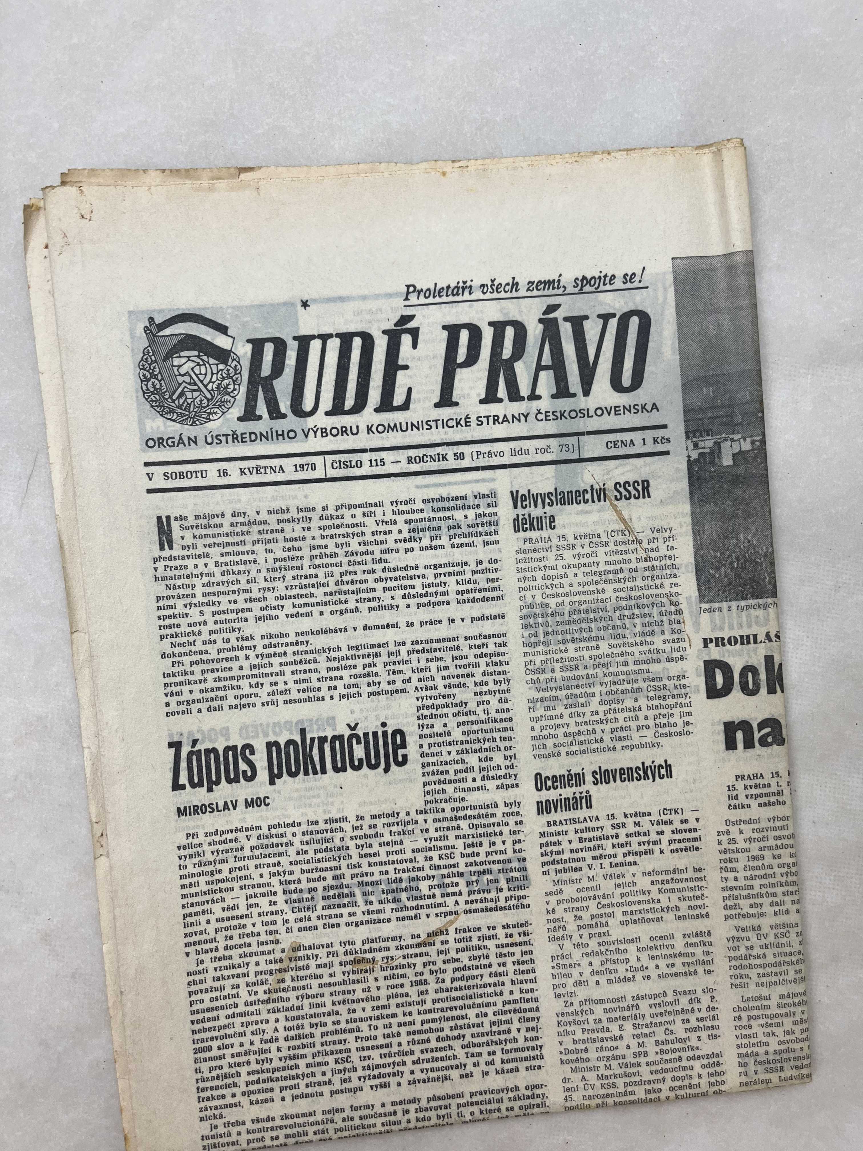 Noviny Rudé právo 16.5.1970