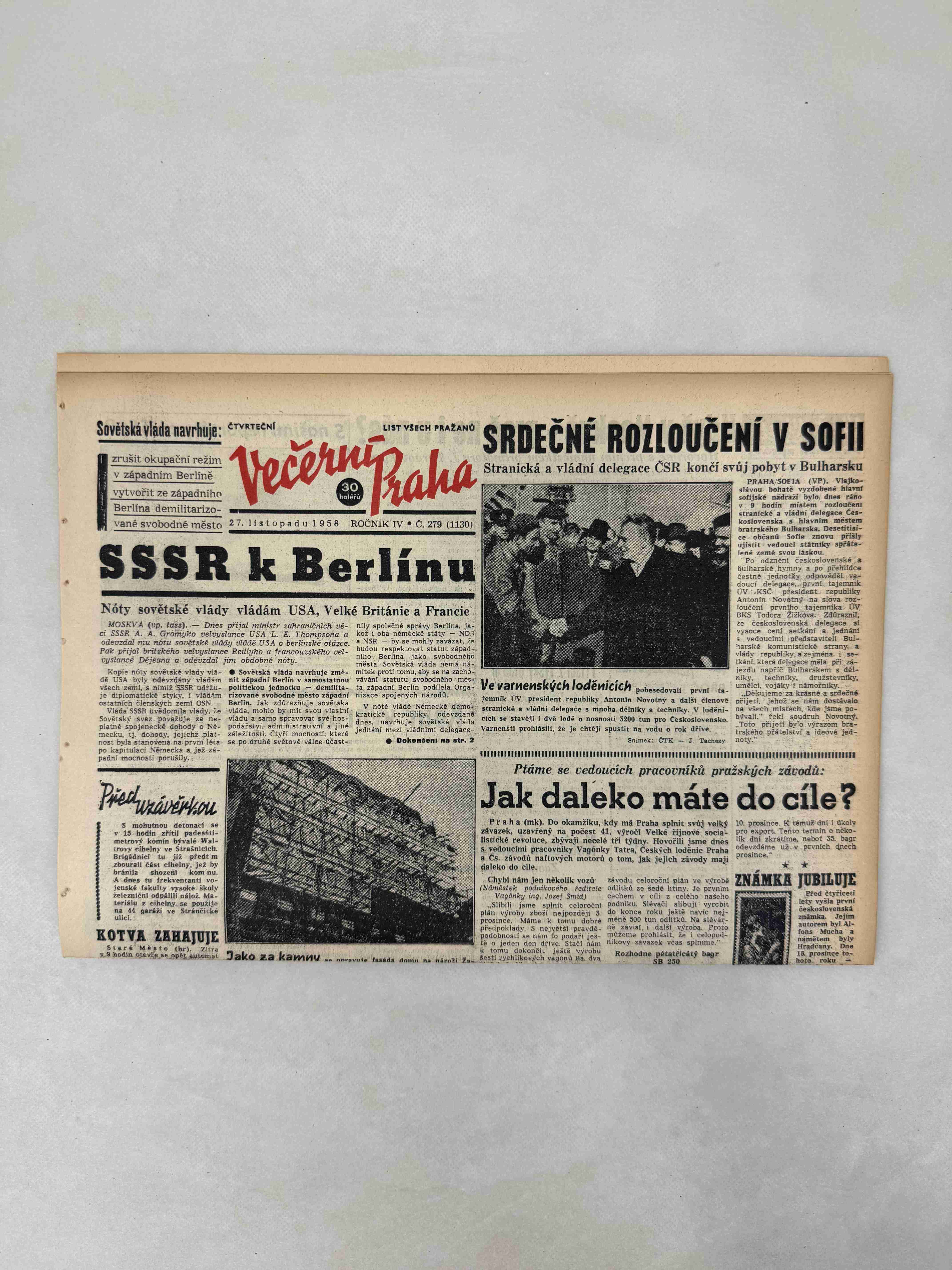 Originální dobový výtisk novin, nejedná se o reprodukci!