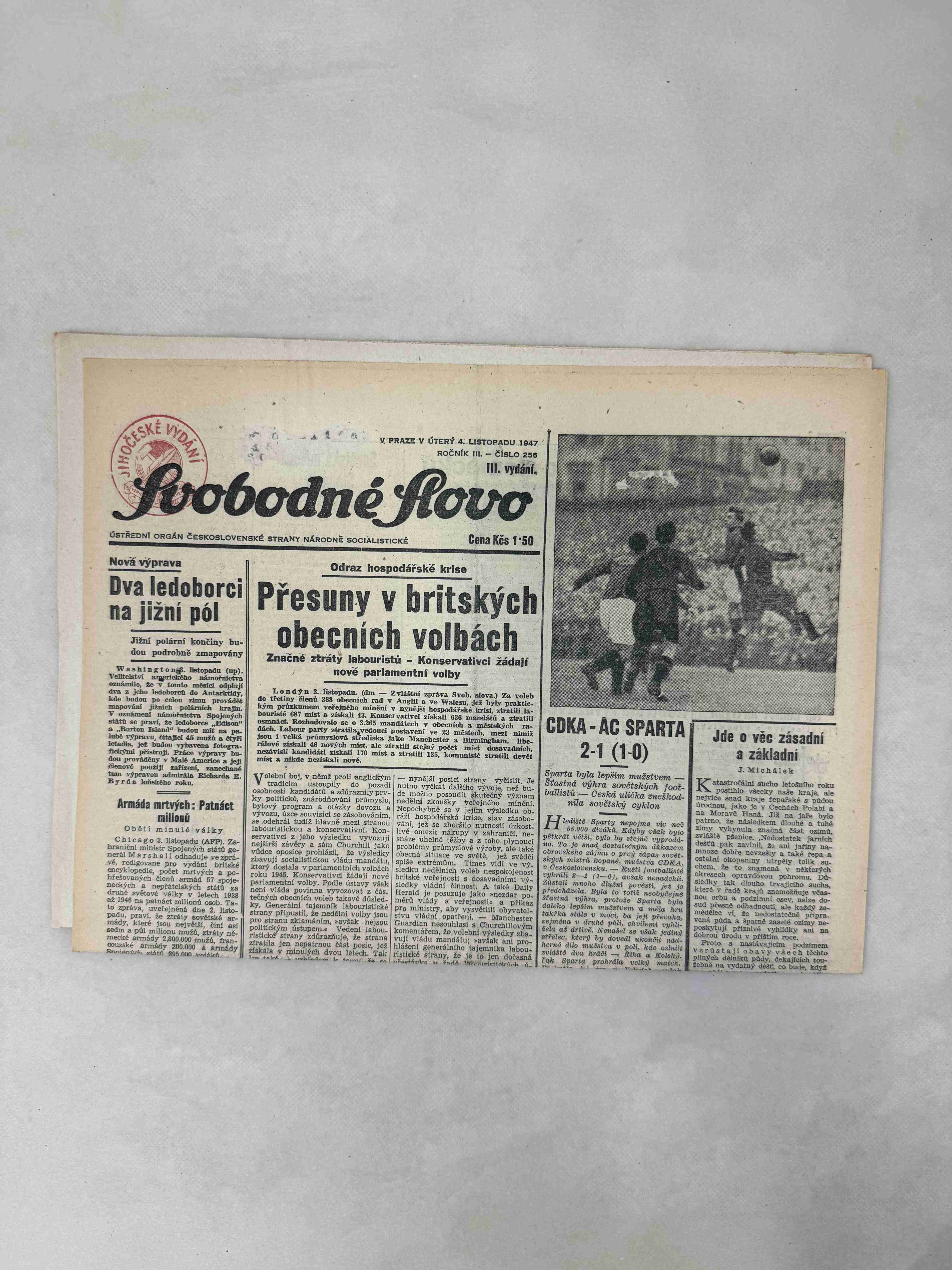 Originální dobový výtisk novin, nejedná se o reprodukci!